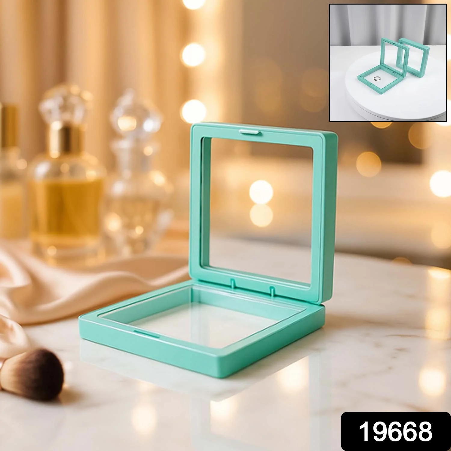 Transparent Jewellery Display Box (9x9 cm / 1 Pc) – Floating Frame Organizer for Rings, Necklaces, Earrings, and Collectibles | Reusable Magnetic Display Case for Shop Counters, Exhibitions & Personal Collections (9x9 cm / 1 Pc / Green)