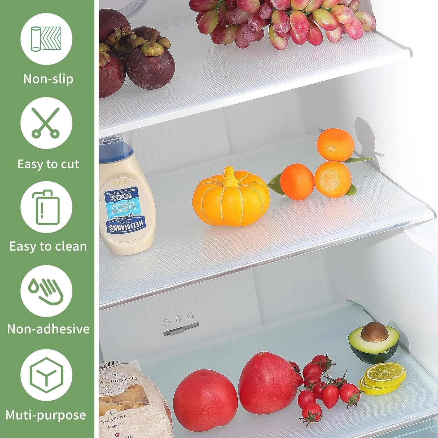 Protects fridge shelves from spills, stains, and food leakage