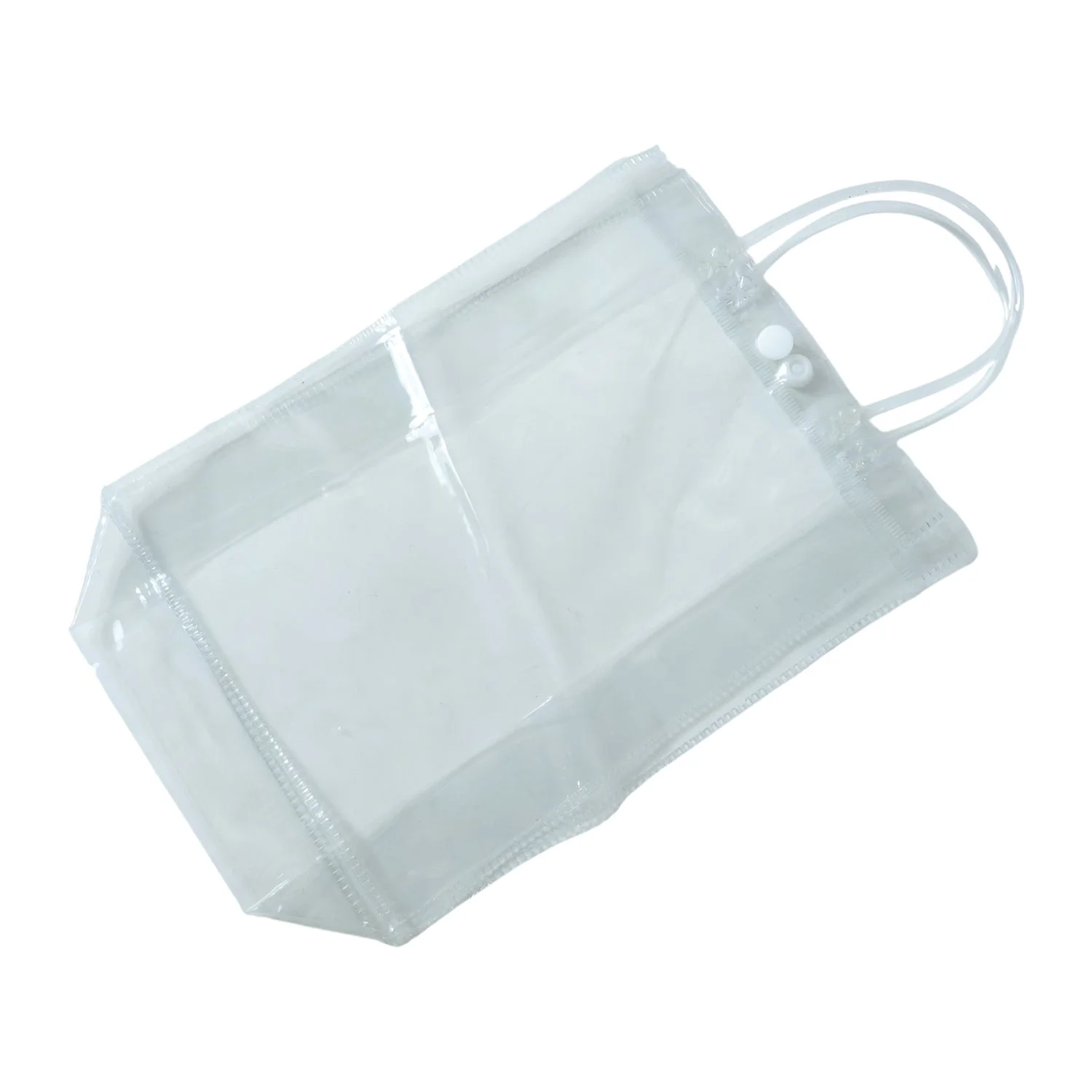 transparent PVC carry bag, carry bag with handle, button closure bag, travel PVC bag, shopping PVC bag, makeup storage bag, daily essentials bag, clear PVC tote bag, portable PVC bag, multipurpose travel bag, cosmetic PVC bag, waterproof carry bag, lightweight PVC bag, durable transparent bag, versatile storage bag, home and travel organizer