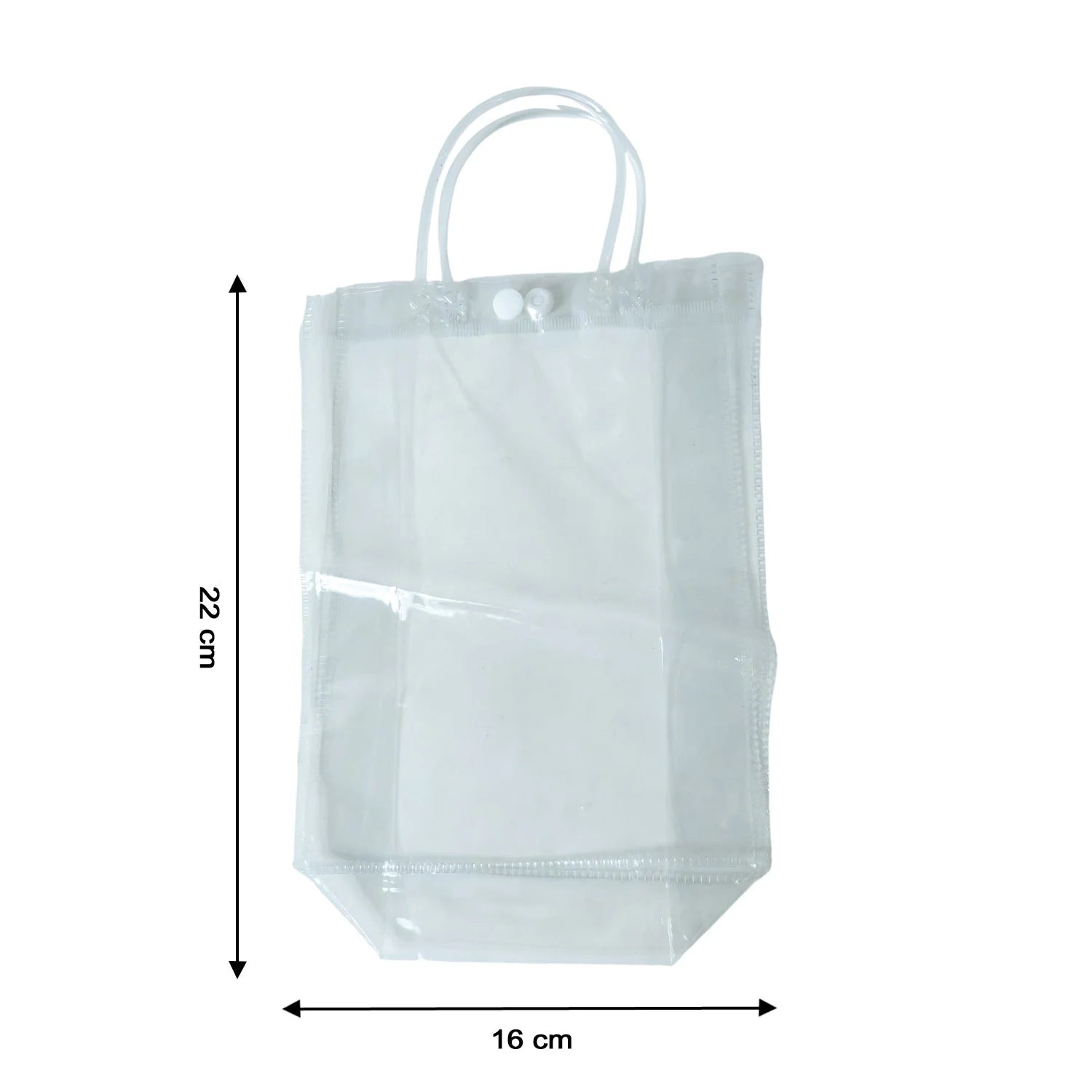 Transparent PVC Carry Bag with Handle and Button Closure for Travel, Shopping, Makeup & Daily Essentials – 22 x 16 cm – 1 Pc