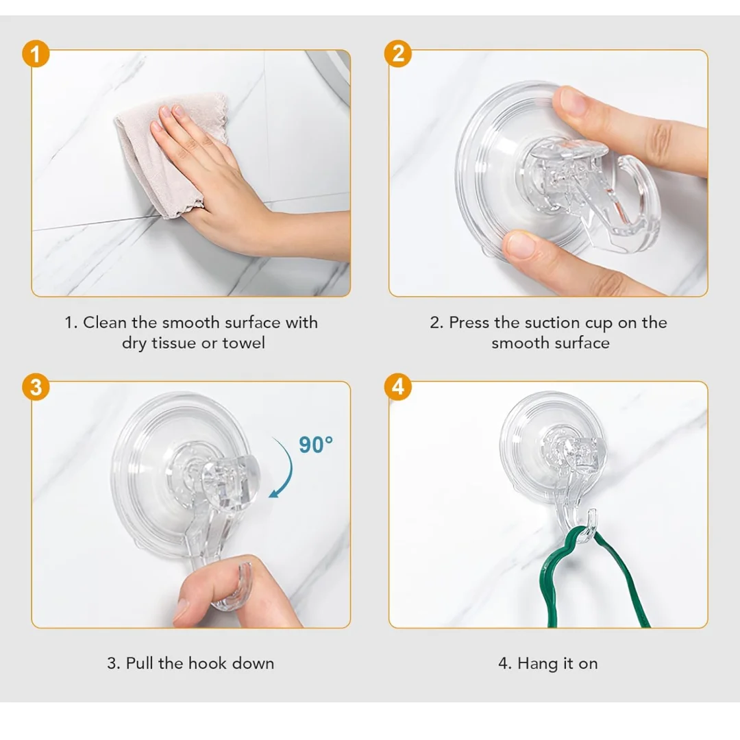 - The Transparent Rubber Vacuum Sucker Hooks are the perfect solution for organizing your home. Crafted with strong suction power, these hooks can be securely attached to bathroom, kitchen, and window walls with ease. Best of all, each hook comes with two pieces of transparent rubber, for a cleaner, more professional look. Enjoy stress-free home organization