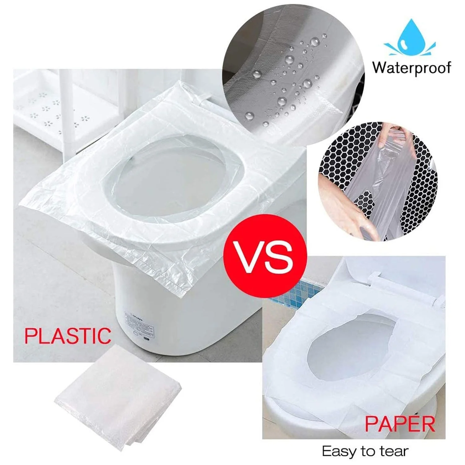 - 【SAFETY ANTI-SLIP】Travel toilet seat covers waterproof are adopts a nested design, multi-directional wrapping and is not easy to slide. When you put the into the toilet seat, it will stay on the toilet without any messy rubber strips.