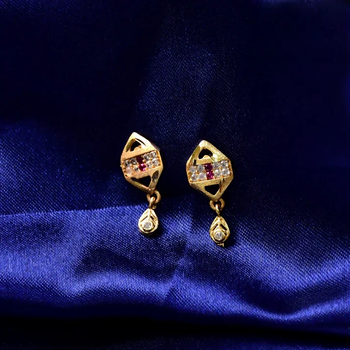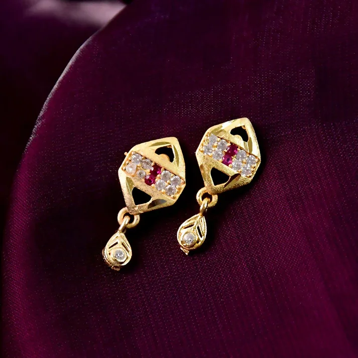 Be the first to review Trendy Geometric Gold Earrings with Sparkling Stones & Drop Charm!