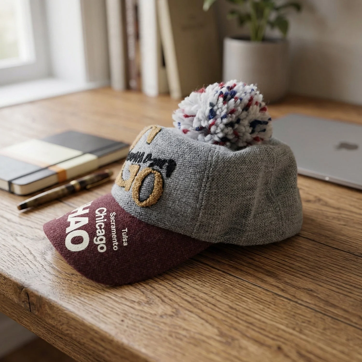 Trendy Winter Baseball Style Woolen Cap with Pom Pom for Women 1 Pc – Warm Knit Cold Weather Cap with Stylish Letter Design and Cozy Fit Outdoor Fashion Hat