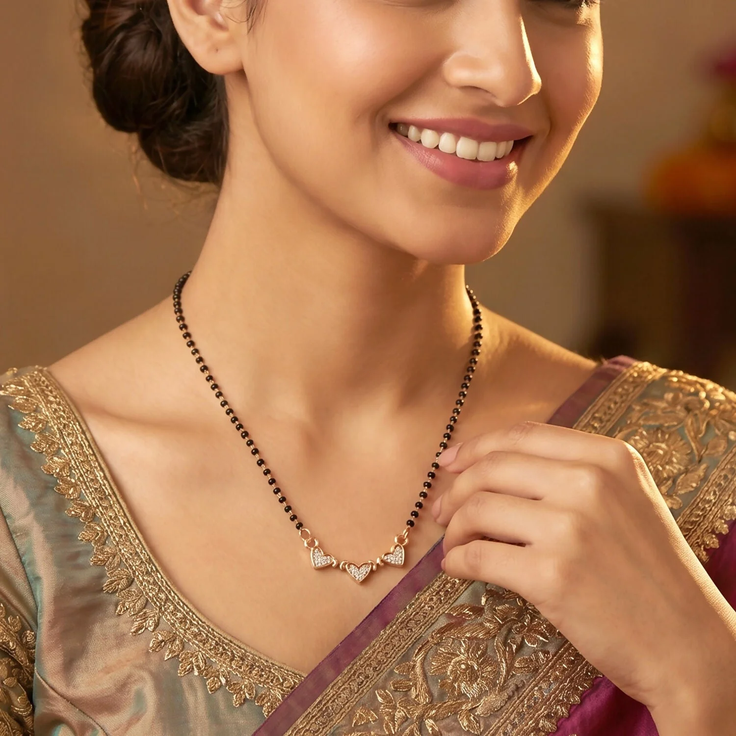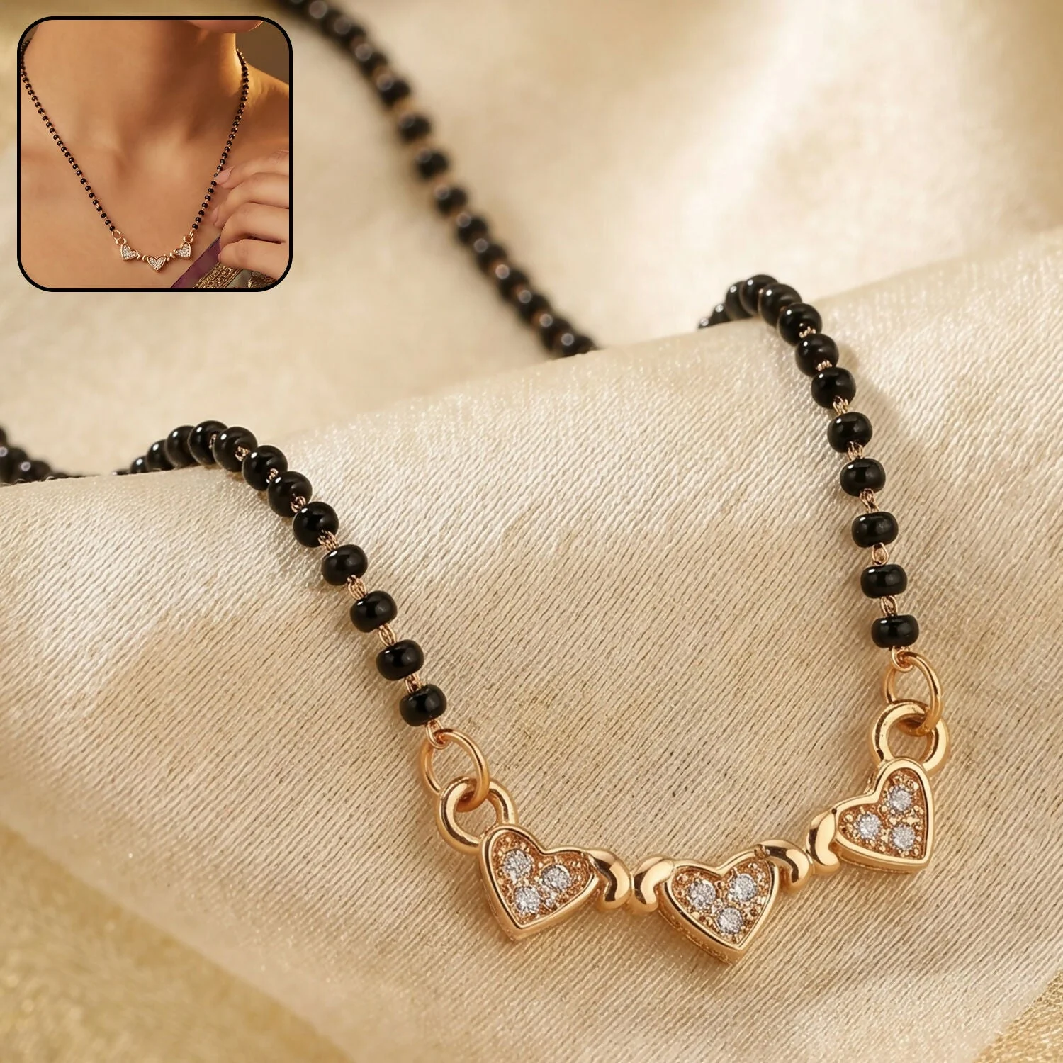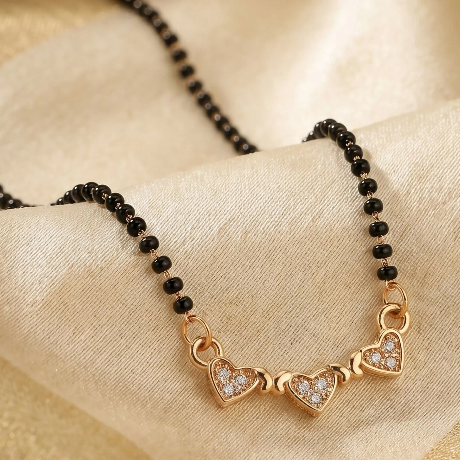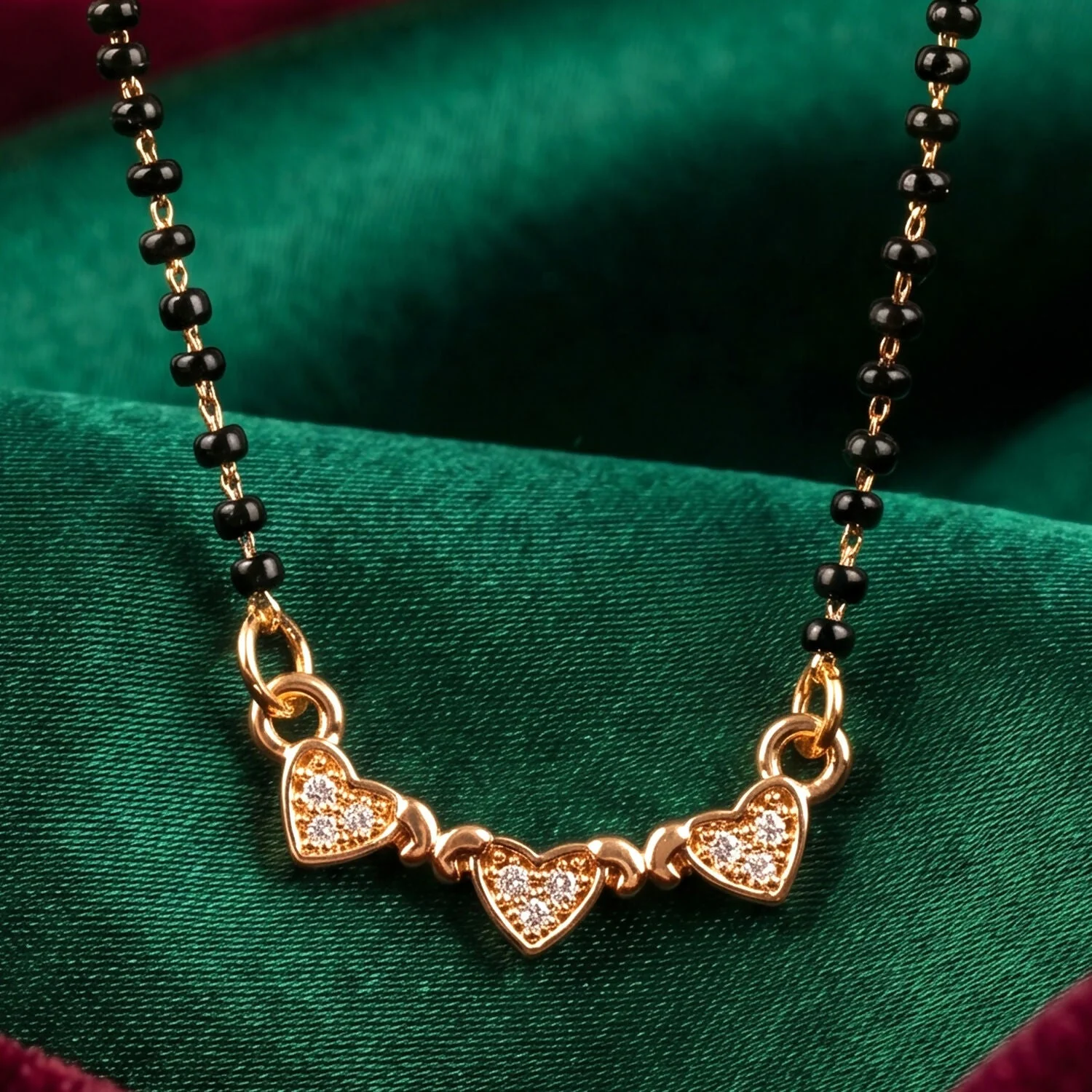 Be the first to review Triple Heart Design Mangalsutra Necklace with Crystal Stones!