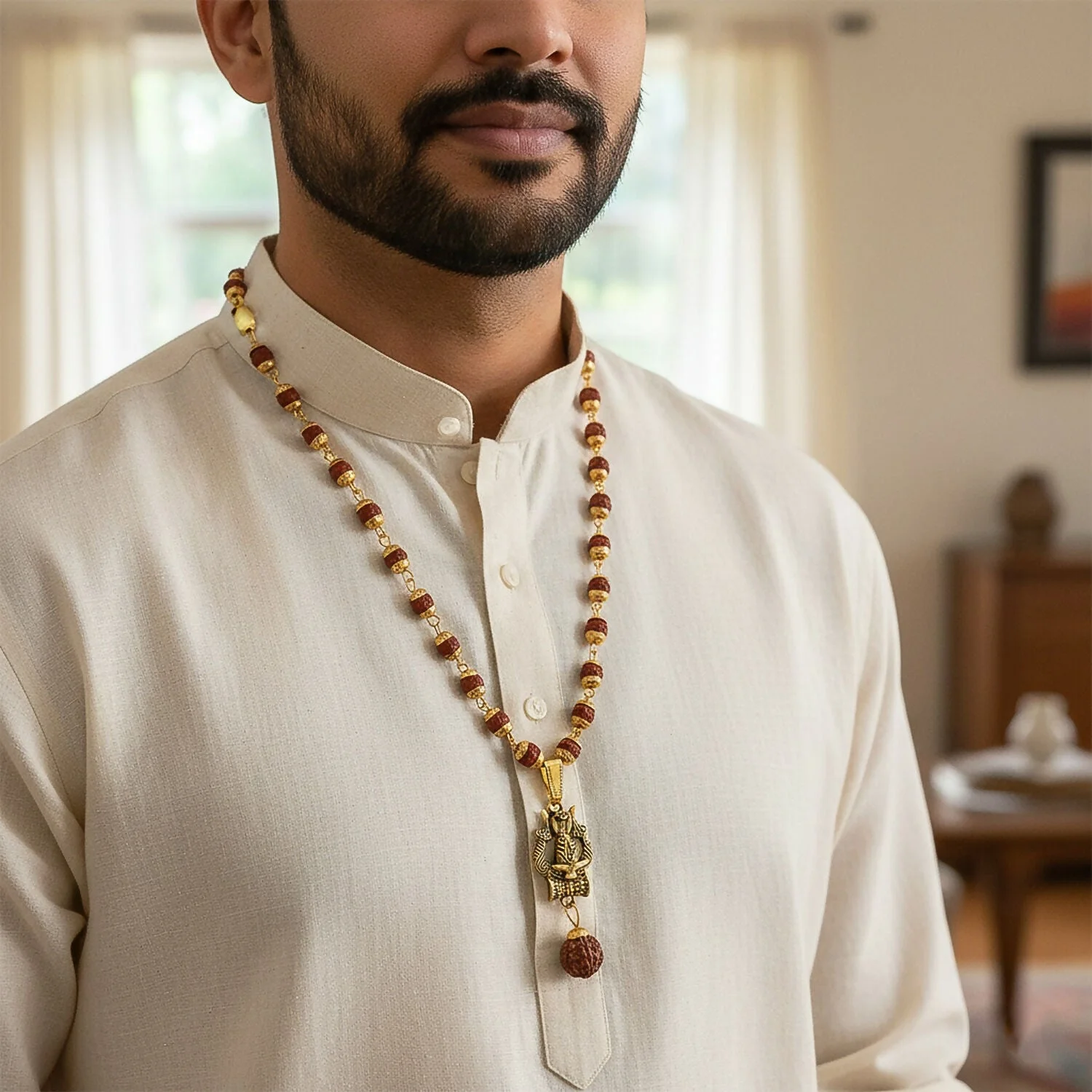 Be the first to review Trishul Shivling Gold Pendant & Rudraksha Mala!