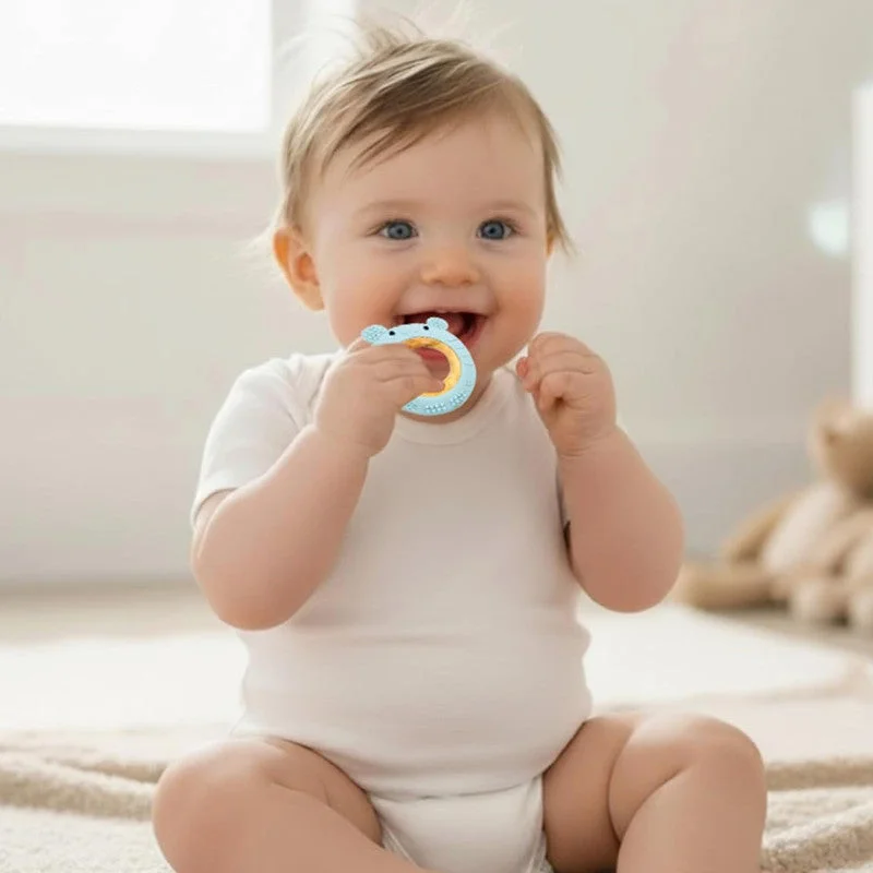This Ring Rabbit teether from Truzo Toys is made with soft food-grade silicone and a smooth wooden ring for safe chewing. It helps soothe teething discomfort and is designed to reach all gum areas easily. The round shape offers a baby-friendly grip, making it comfortable to hold. Non-toxic, BPA-free and safe for daily use. Suitable for infants during their teething stage.