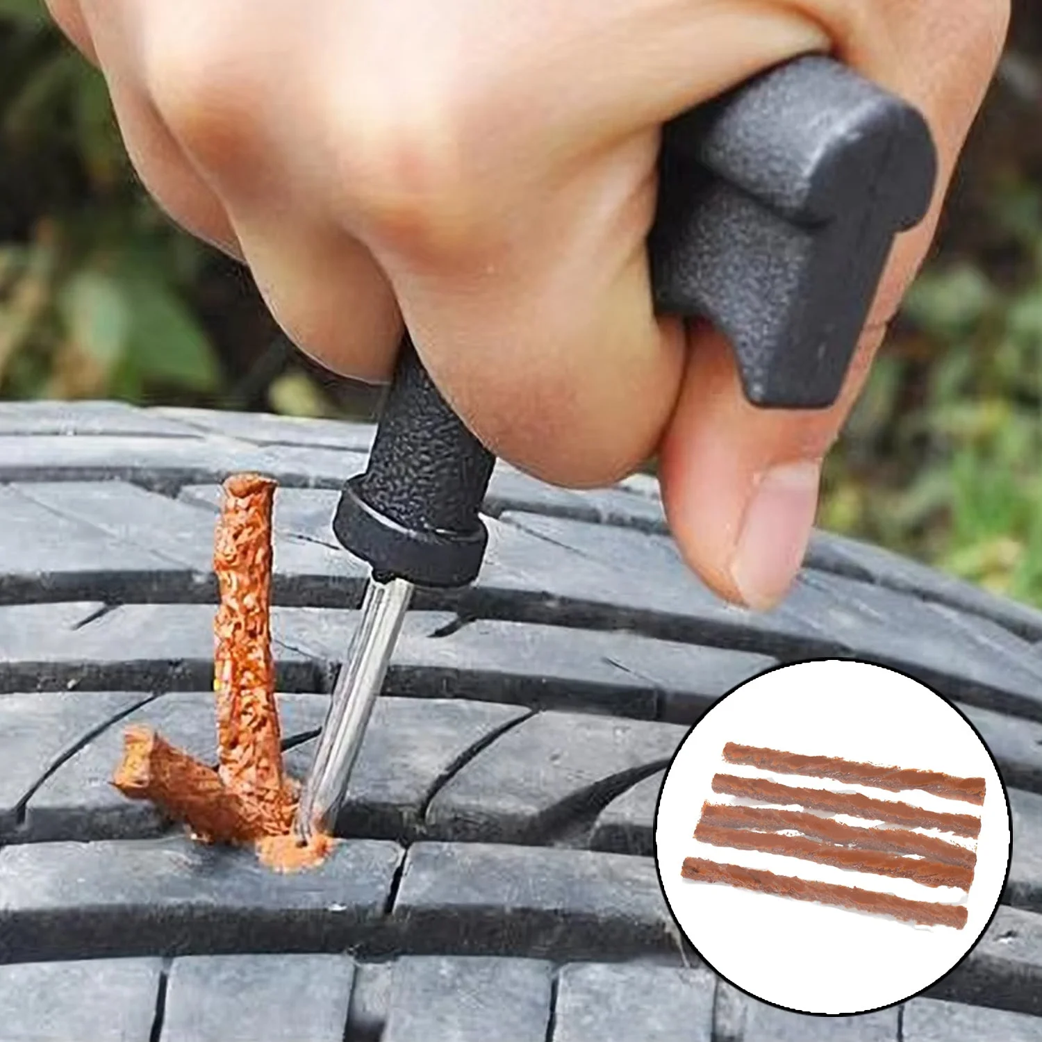 - Practical Combination Set: This tubeless tire repair kit tool comes with the screwdriver handle rasp drill, threaded inserting needle drill and 5 pieces of brown tire repair strings, the combined tire reamer and insertion tool make it easy and straightforward to repair the tire, bringing you life with convenience.
