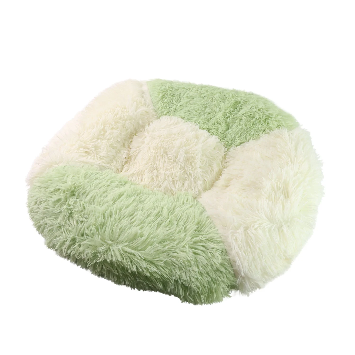 Ultra Soft Fluffy Pet Bed for Cats & Small Dogs – Cozy Round Anti-Anxiety Nest Cushion in Dual-Tone Cream & Green Plush – 1 Pc