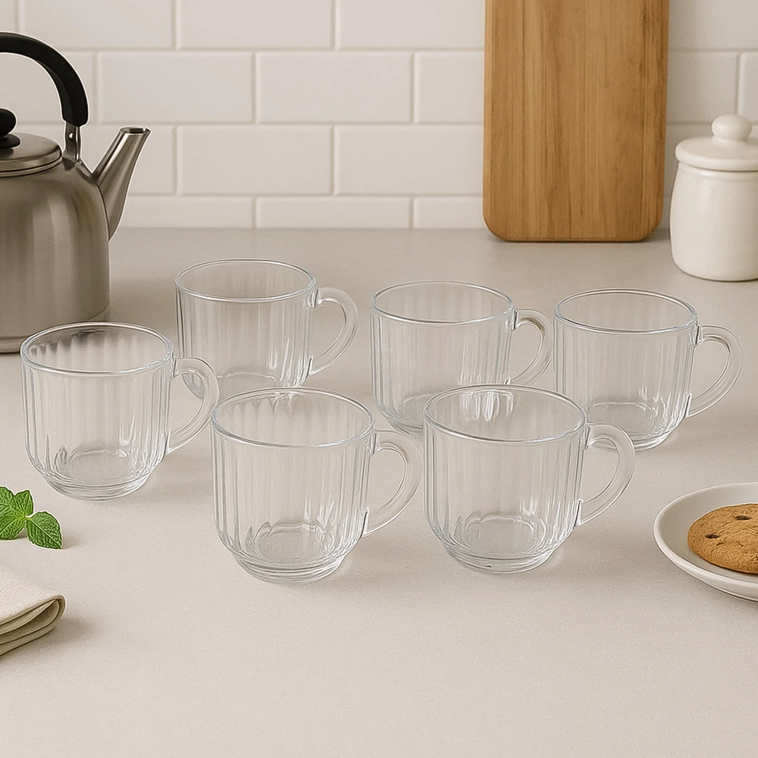 6 Pcs Unbreakable Transparent Plastic Tea Cups Set with Handles – Lightweight & Durable Cups for Tea, Coffee, Milk & Hot Beverages – Ideal for Home, Office, and Outdoor Use