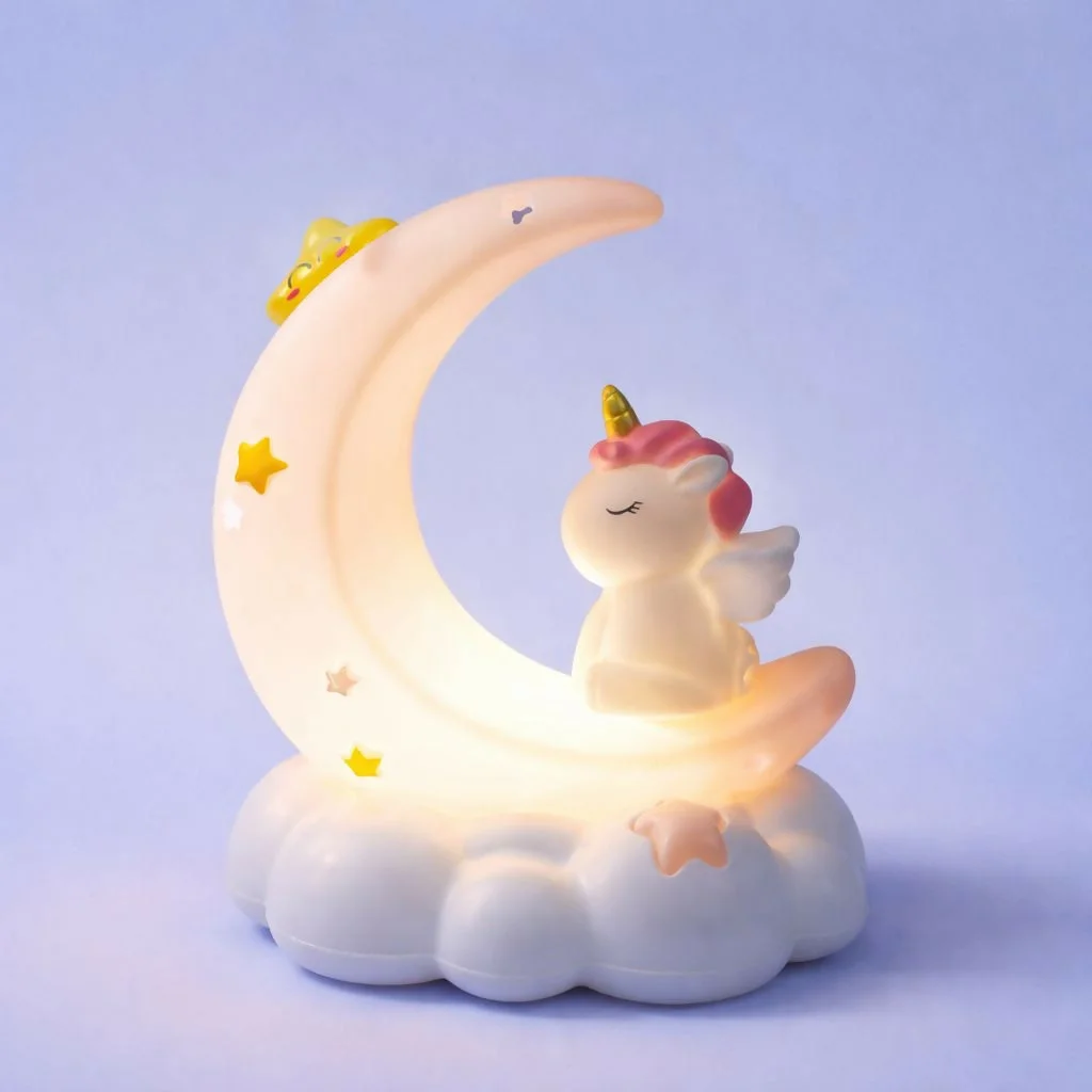 unicorn moon lamp, kids night light, unicorn night lamp, kids bedroom lamp, moon night light for kids, LED night lamp for children, nursery night light, bedside lamp for kids, cartoon night lamp, decorative kids lamp, baby room night light, unicorn bedroom decor lamp, soft glow night light, rechargeable kids lamp, cute bedroom night light