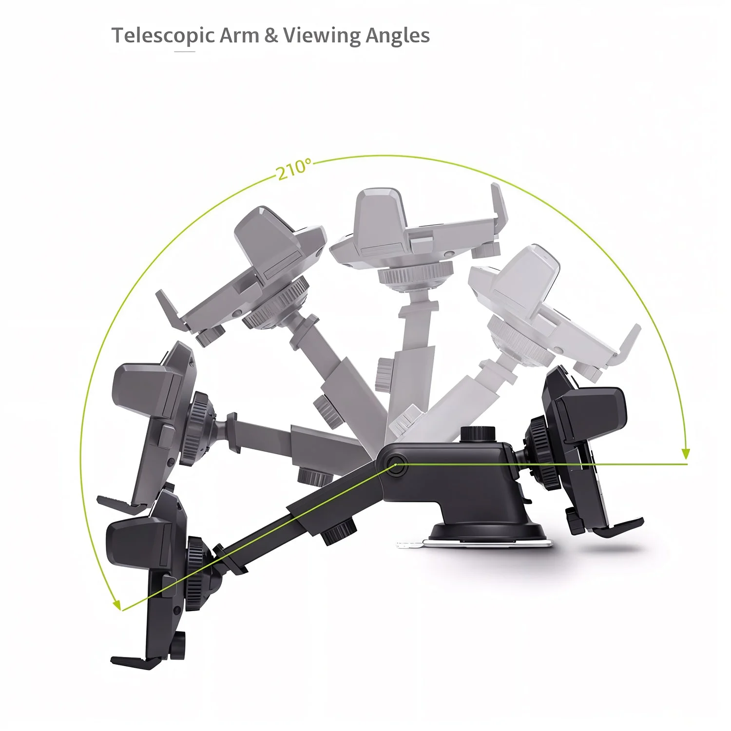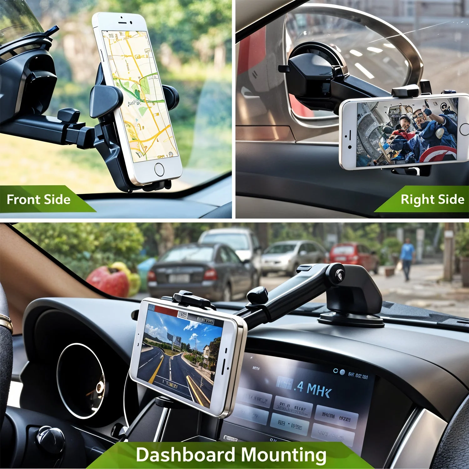 Powerful Suction Cup: Reusable, washable silicone base for dashboard or windshield attachment.