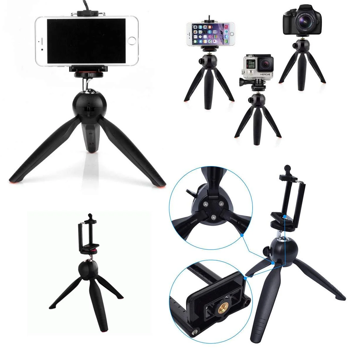 The mini tripod is designed to satisfy the needs of those consumers who are looking for a support which is portable, lightweight, and easy to use. It’s perfect for achieving hard to get video shots or take photos while keeping your camera or smartphone steady. Or just close the legs to use it as a comfortable grip to capture great videos or photos that stand out from the crowd.