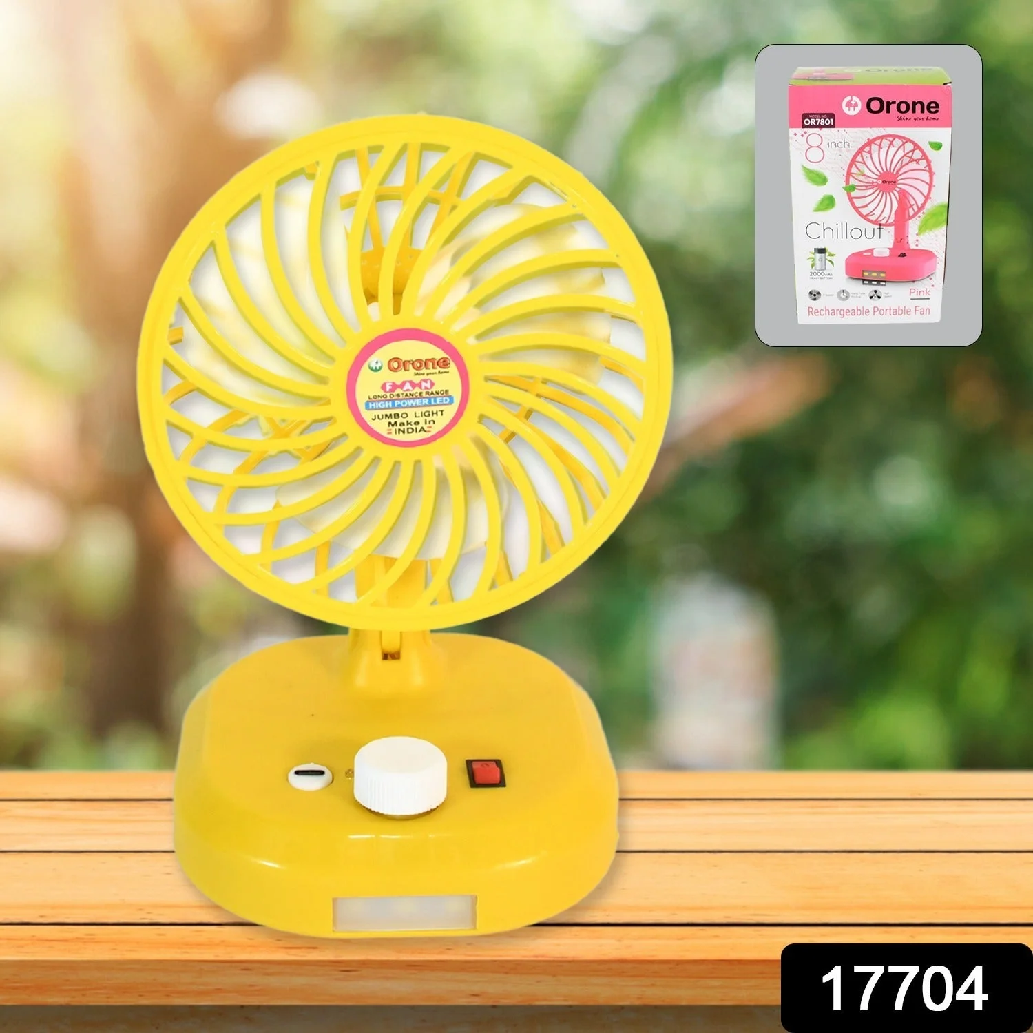 17704 USB-C Type Rechargeable Portable Fan With LED Light Heavy Duty Motor & Foldable Fan With Charging Port Home, Outdoor, Temple