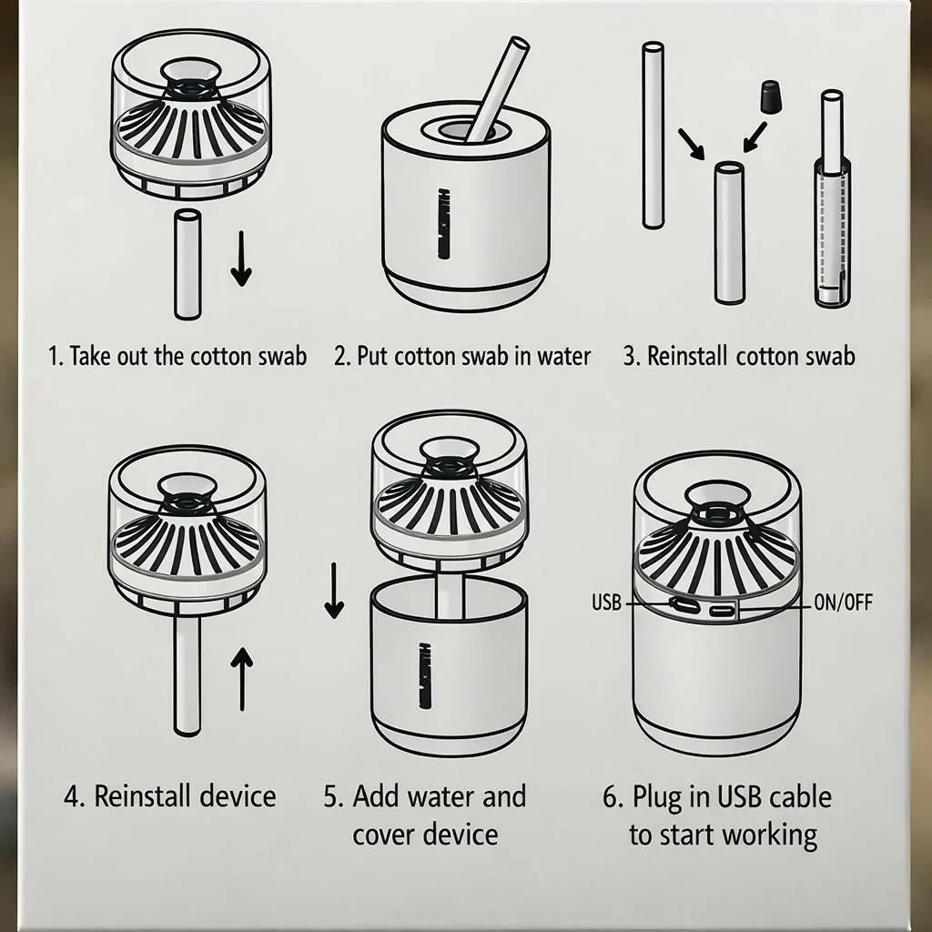 • Simple Setup & Maintenance – Easy cotton swab installation and water refill system for hassle-free use.