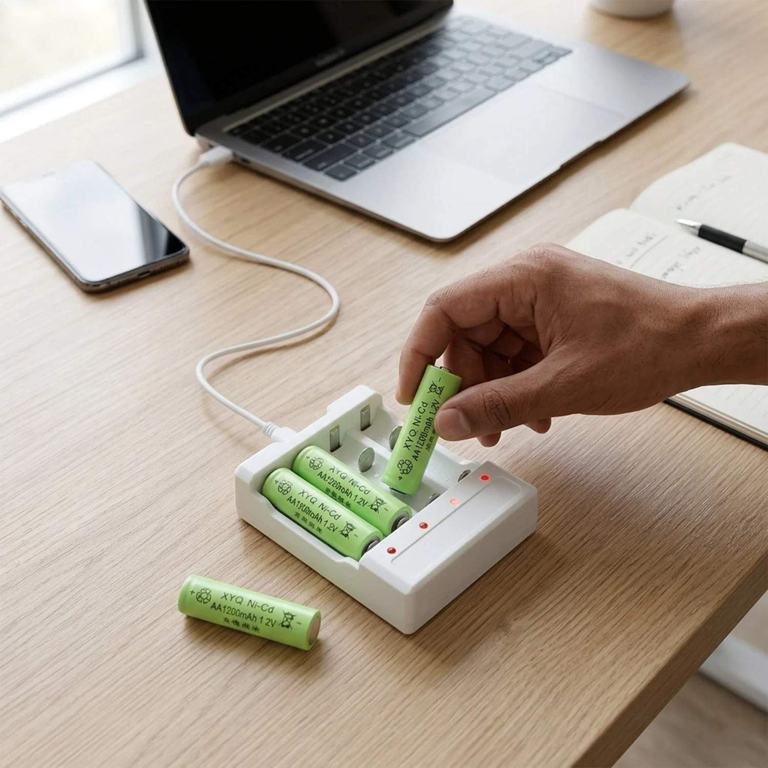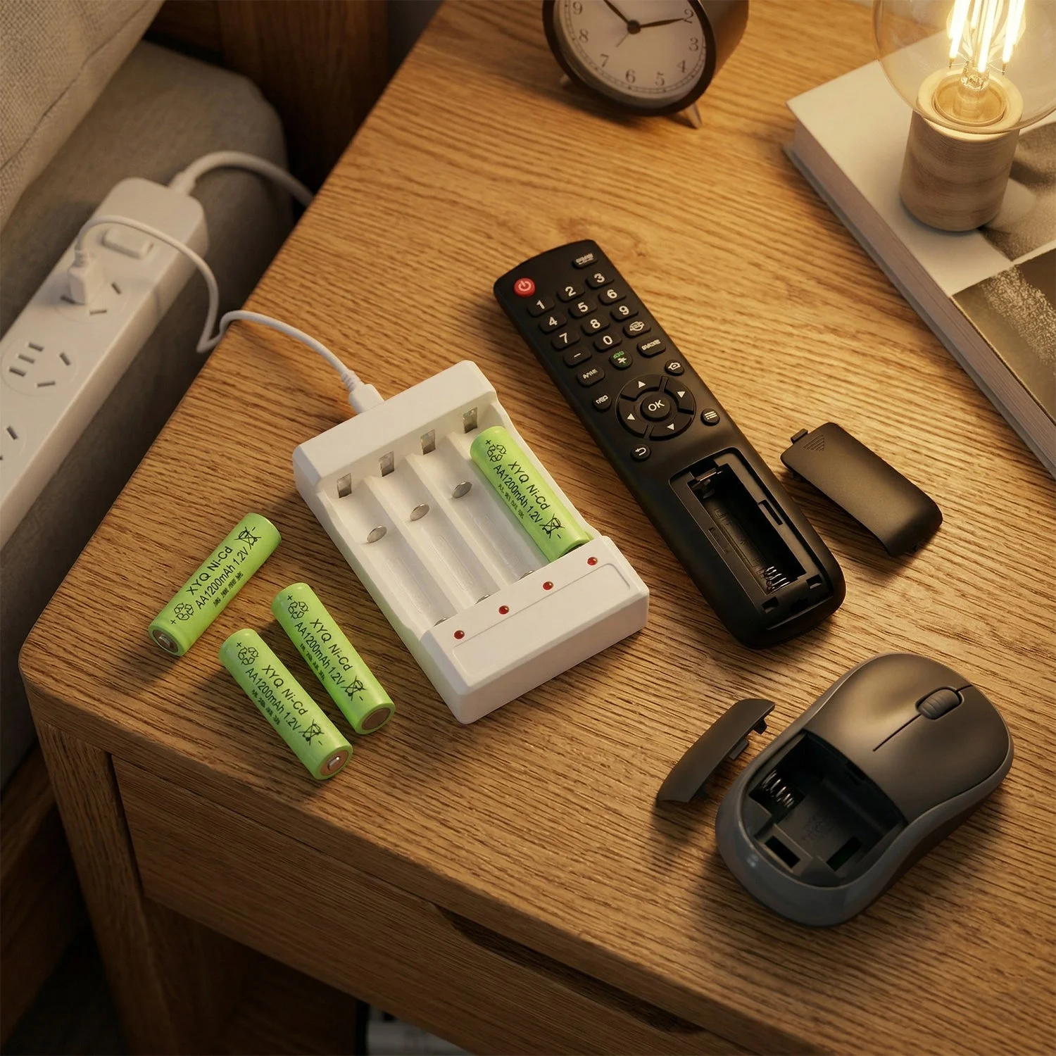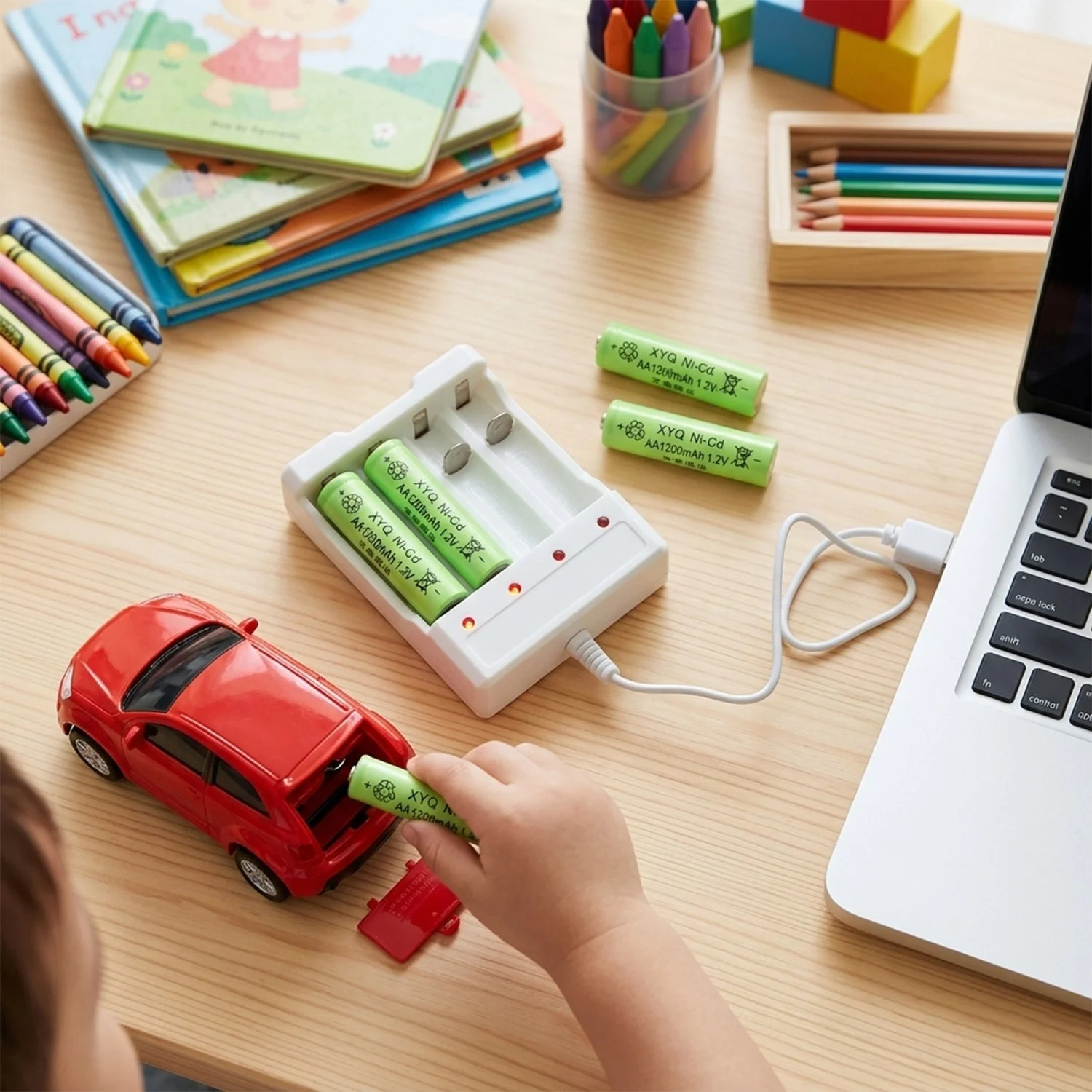 Disposable batteries often create waste and extra expense. The USB Powered Rechargeable AA Battery Charger with 4 AA Batteries offers a convenient and eco-friendly power solution. This AA battery charger quickly charges rechargeable AA batteries for daily devices like remotes, toys, and electronics.