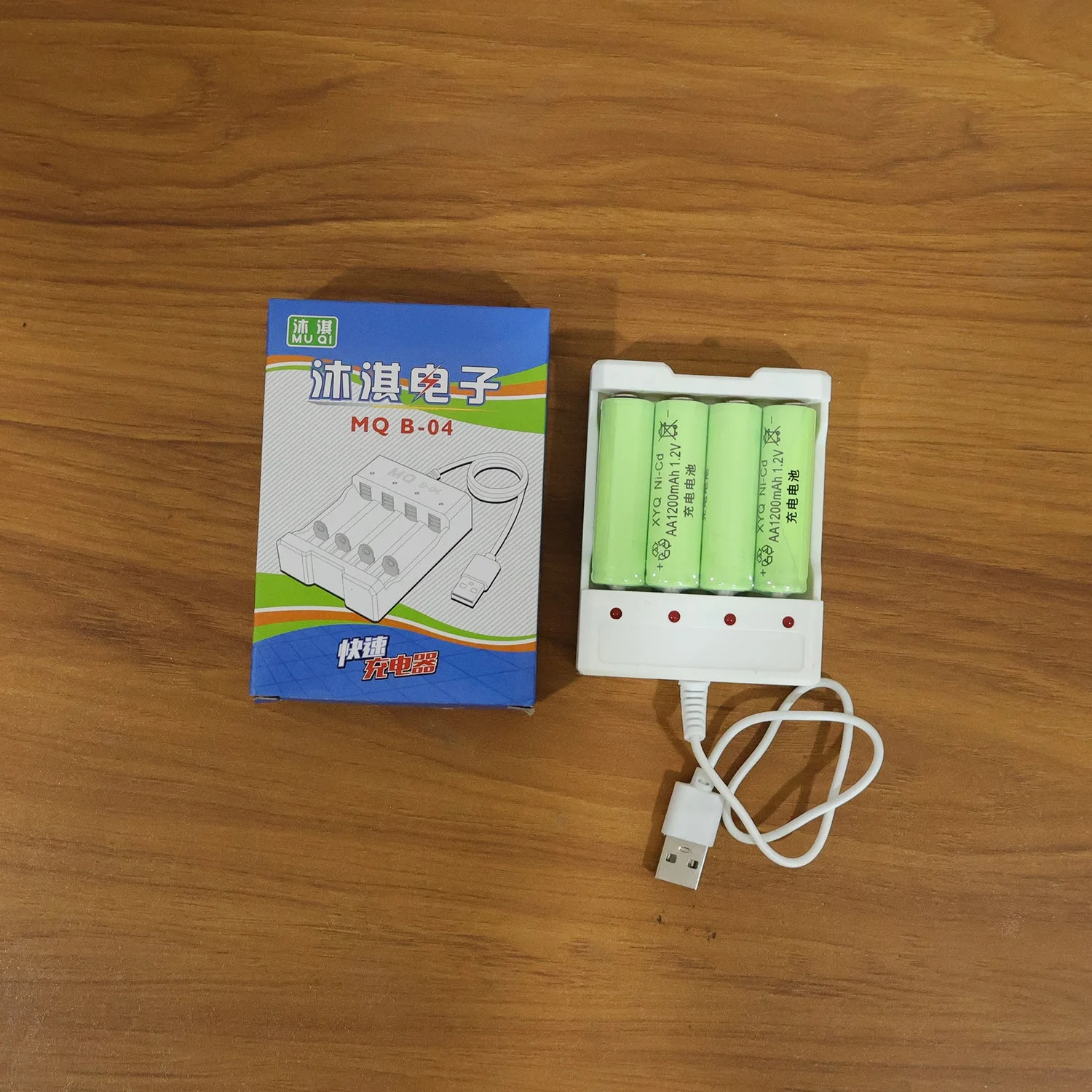 Rechargeable AA Battery Charger Set with 4 AA Batteries 1 Set – USB Powered Fast Charging Battery Charger Kit for Cameras Remote Toys Wireless Devices Long Lasting Rechargeable Battery Pack