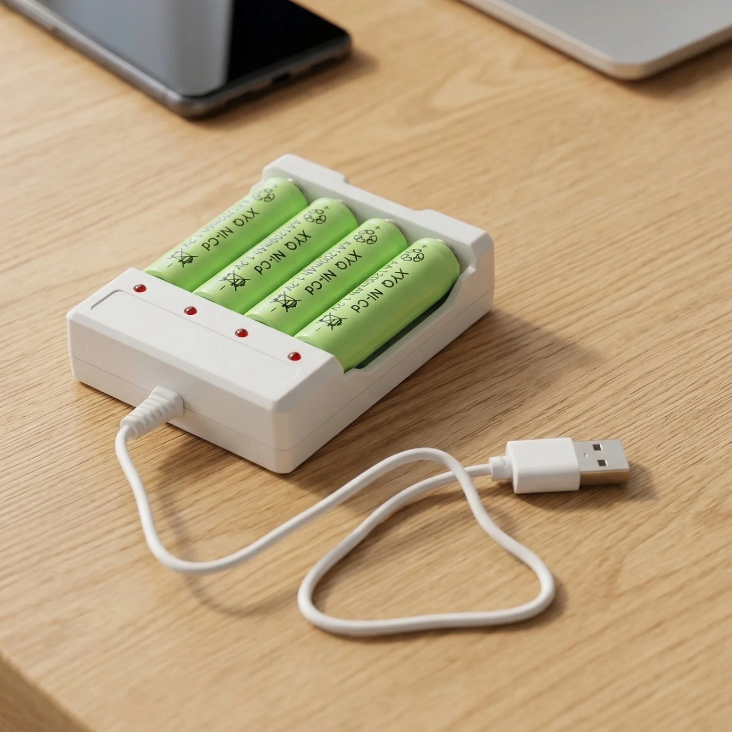 Compact and easy to use, the USB rechargeable battery charger works with laptops, adapters, or power banks. The battery charging kit ensures reliable performance whenever you need power. A practical USB battery charger with batteries for home, office, or travel use.