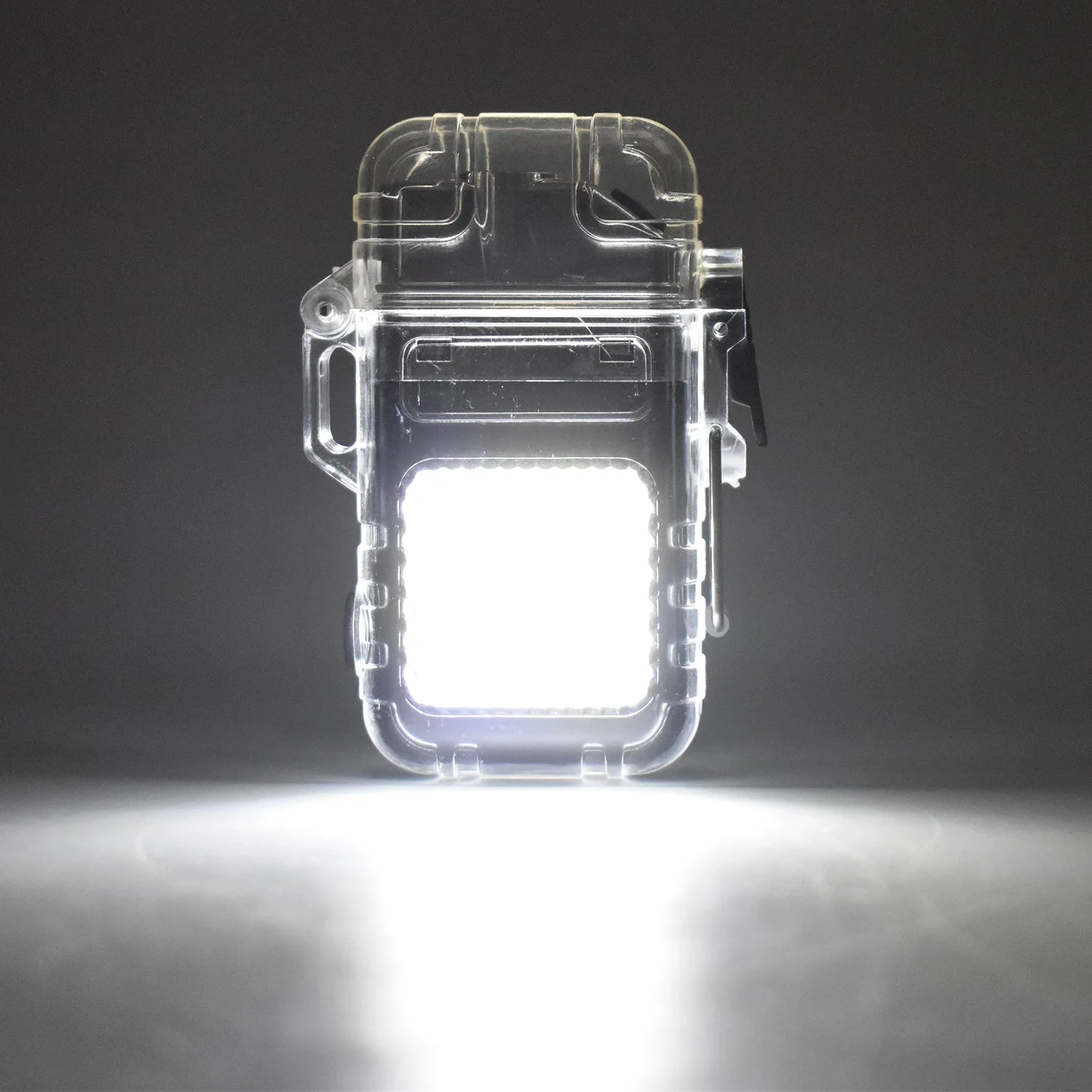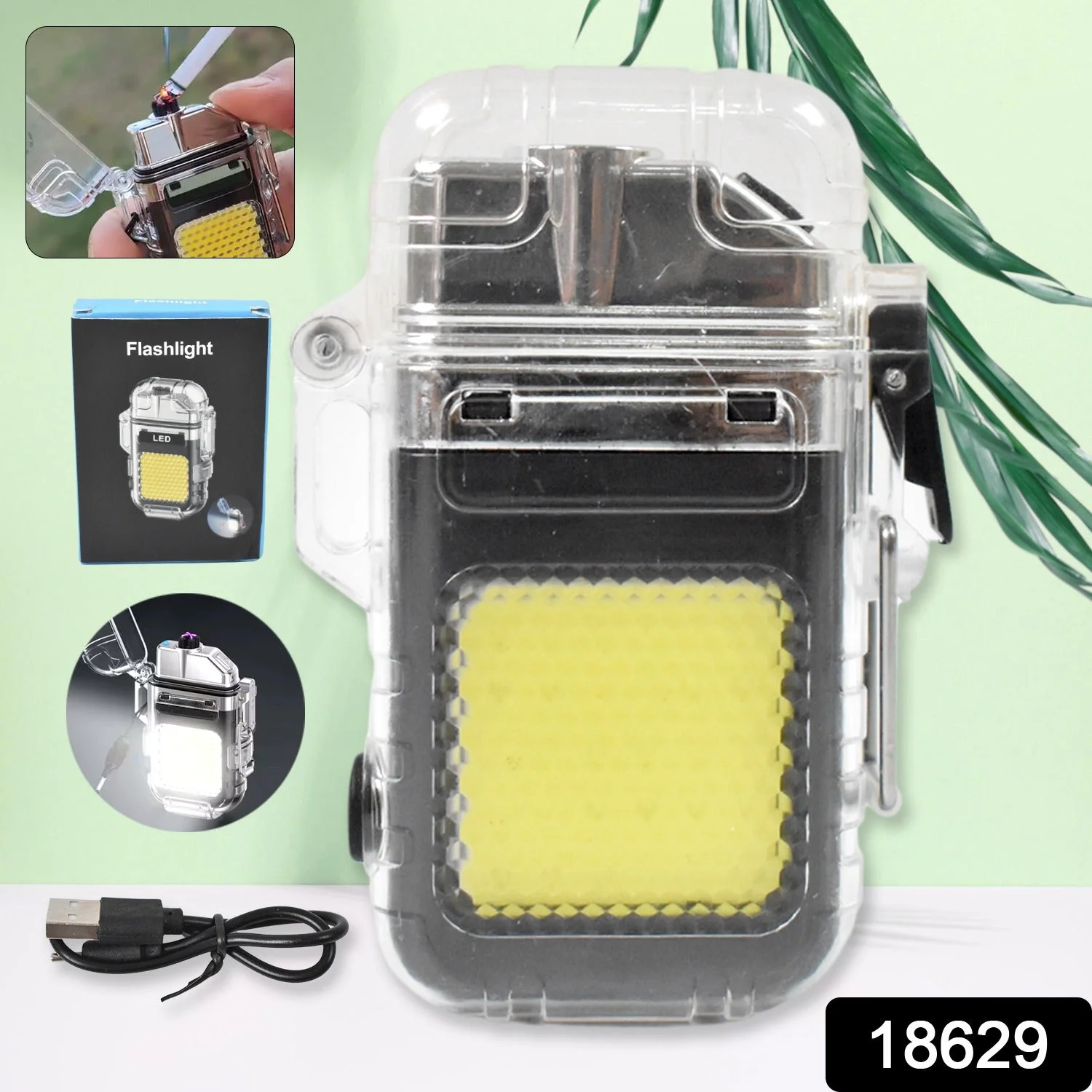 Electric Lighter USB Rechargeable Dual Arc Lighters, Coil lighter with Waterproof Transparent Shell, 3 Modes COB Flashlight Electric Lighter Outdoor Waterproof Double arc Lighter Type-C Rechargeable Transparent Body Lighter COB Portable Light (1 Pc)