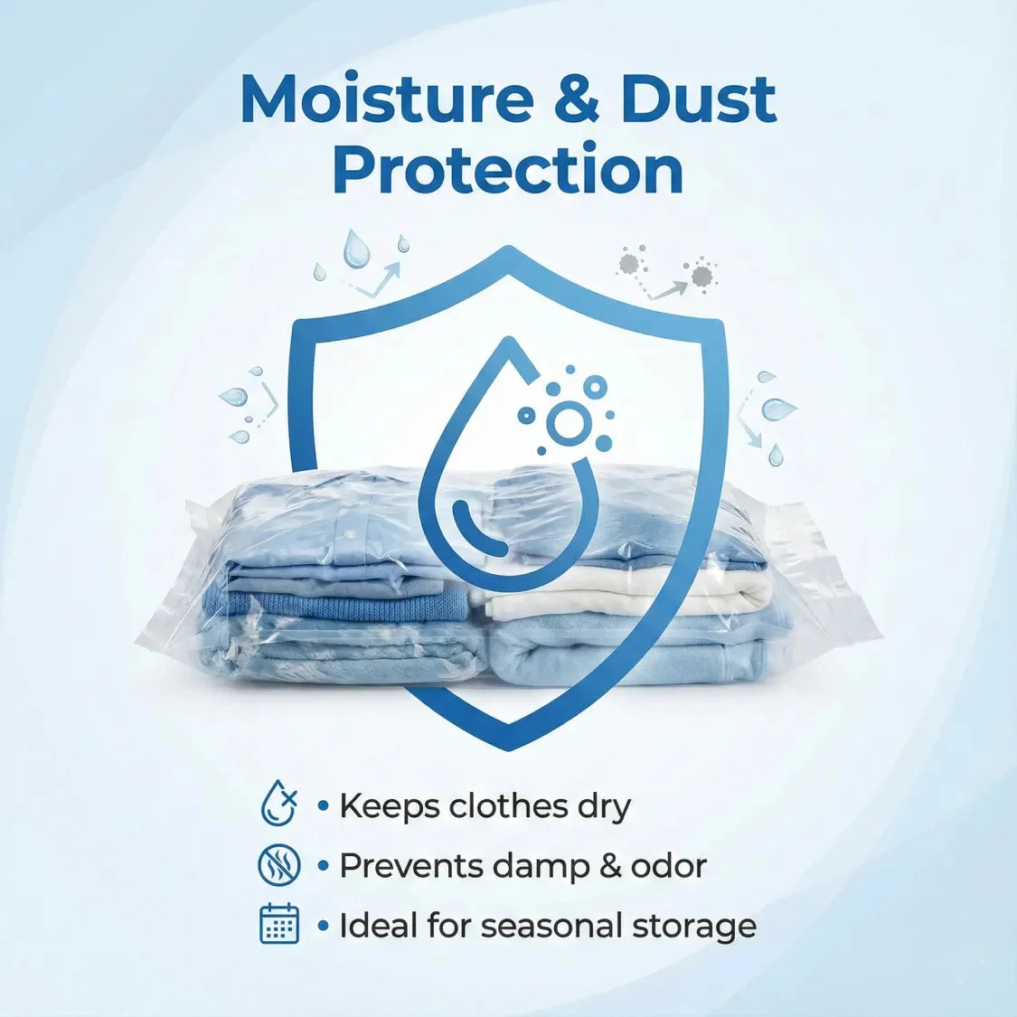 - 【Moisture-proof Dustproof & No Deformation】The compression bags have perfect sealing is attributed to the double-sealed design, and the vacuum bags are tighter and will not leak air. It has a fantastic antibacterial and dust-proof function, which is beneficial for maintaining long-lasting vacuum status. When you open the seal, the clothing rebounds to its original state quickly. The vacuum seal bags are an outstanding solution for clothes becoming damp and moldy in humid seasons.