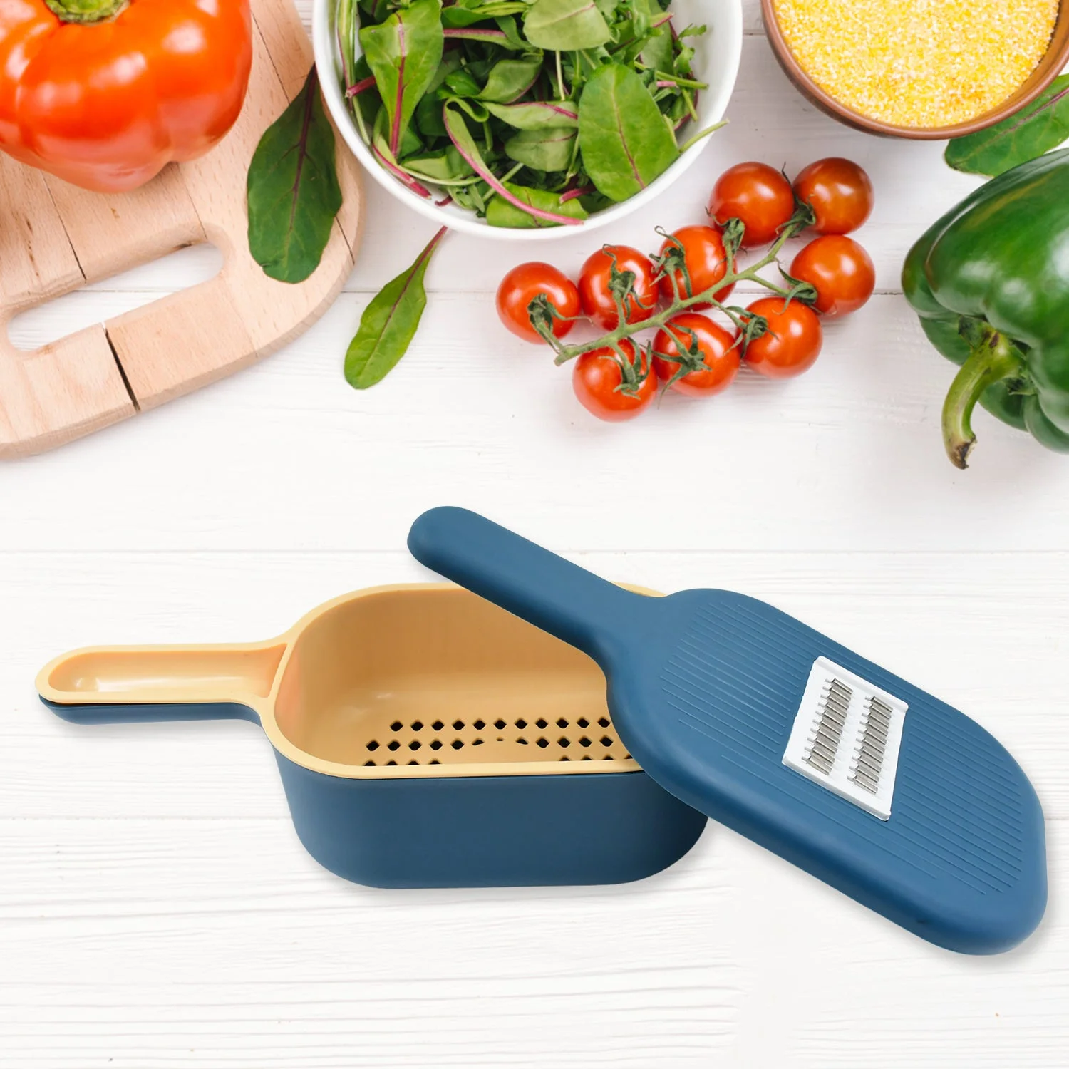 Vegetable Slicer Cutter - 6 Blades Mandoline Slicer - Adjustable Cheese Box Grater Shredder - Veggie Chopper Cutter - Food Slicer & Peeler - Kitchen Accessories, Tools & Appliances with Container & Handle (1 Set)