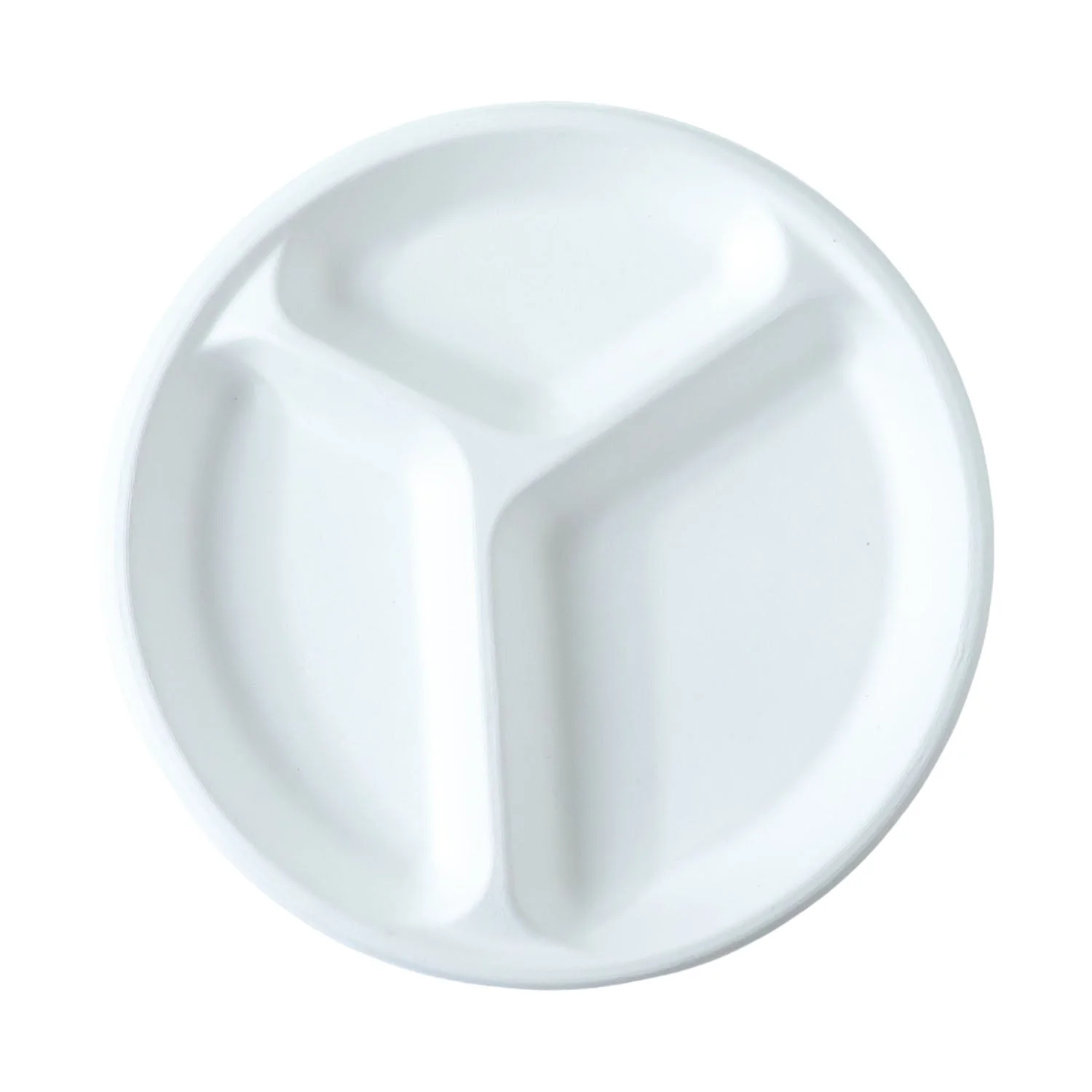 compostable compartment plate , 3-compartment plate , bagasse sectioned plate , microwave-safe plate , freezer-safe plate , lunch plate with compartments , dinner plate for meals , friendly disposable plate , sectioned meal plate , microwaveable compartment plate , round compostable plate , hot food serving plate
