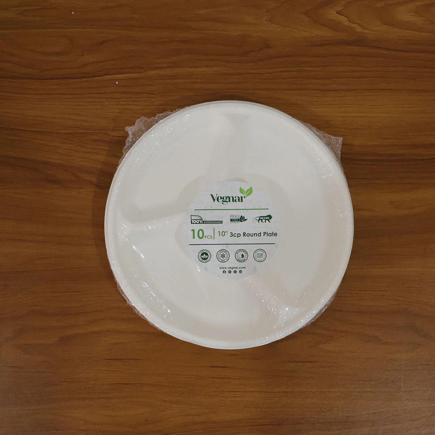 Be the first to review Vegnar 10 Inch 3-Compartment Round Compostable Bagasse Plate (10 Pc)!