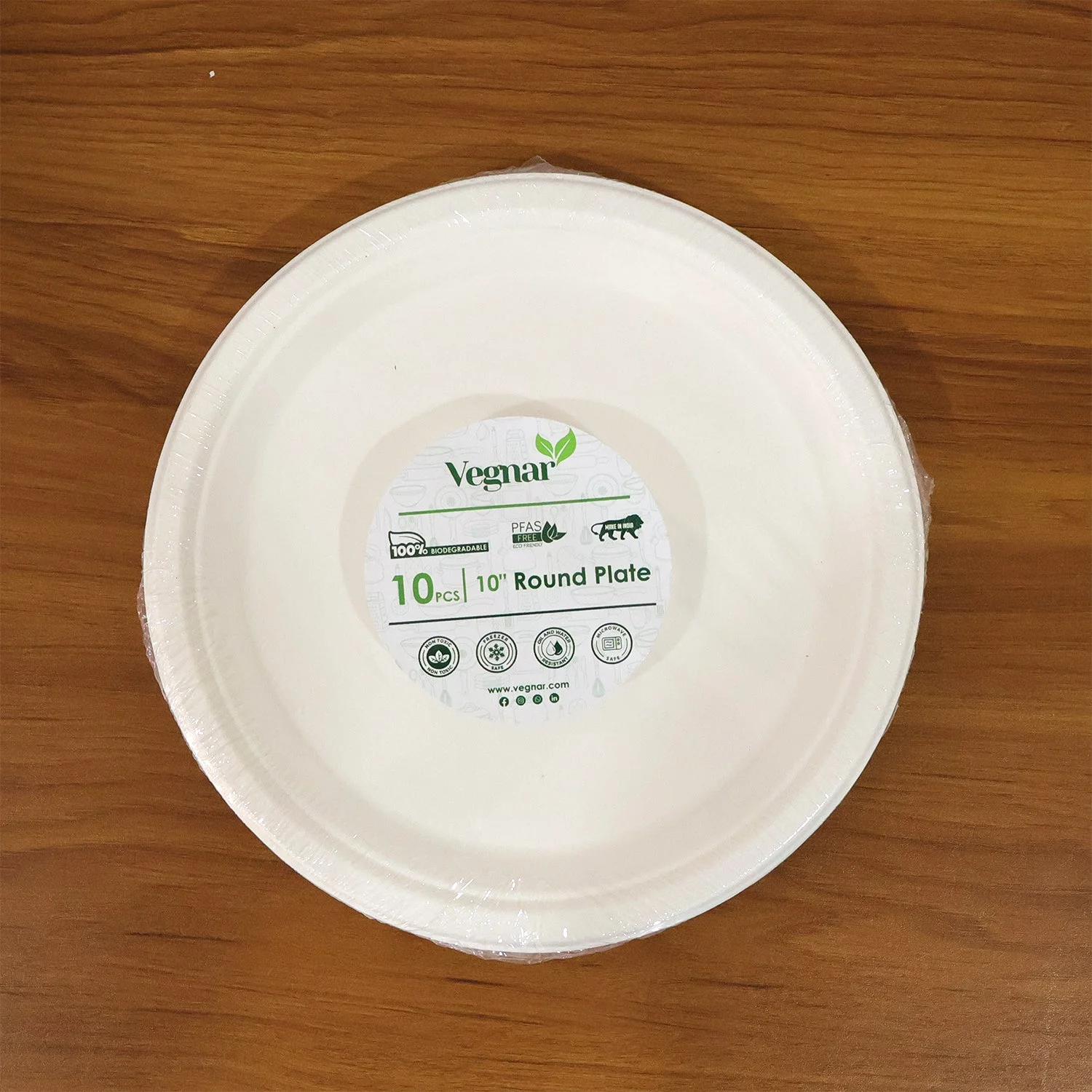 vegnar disposable round food plate, single-use dining plate, 10 piece disposable plate set, meal serving plate, snack serving plate, dessert serving plate, home dining disposable plate, party disposable plates, catering service plate, event serving plate, takeaway food plate, lightweight disposable plate, plastic single-use plate, multipurpose food plate