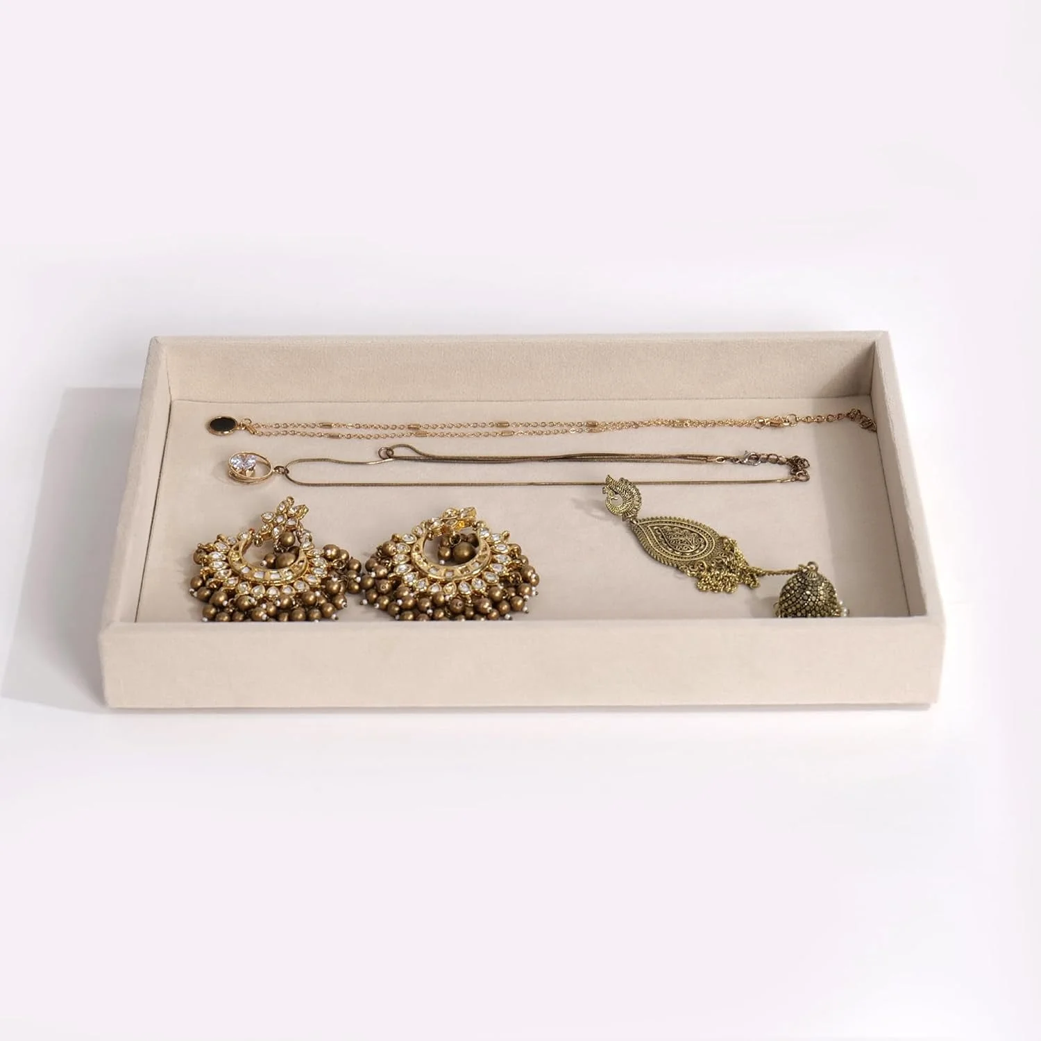 jewelry organizer , display tray , earring tray , ring tray , necklace display , bracelet holder , dressing table tray , showcase jewelry tray , velvet jewelry tray , flat jewelry storage tray, jewelry compartment tray