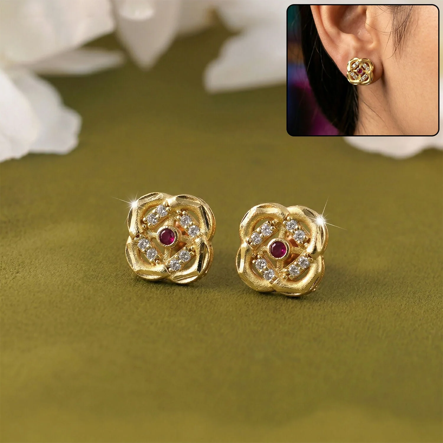 Be the first to review Vintage Style Floral Gold Stud Earrings with Detailed Pattern!