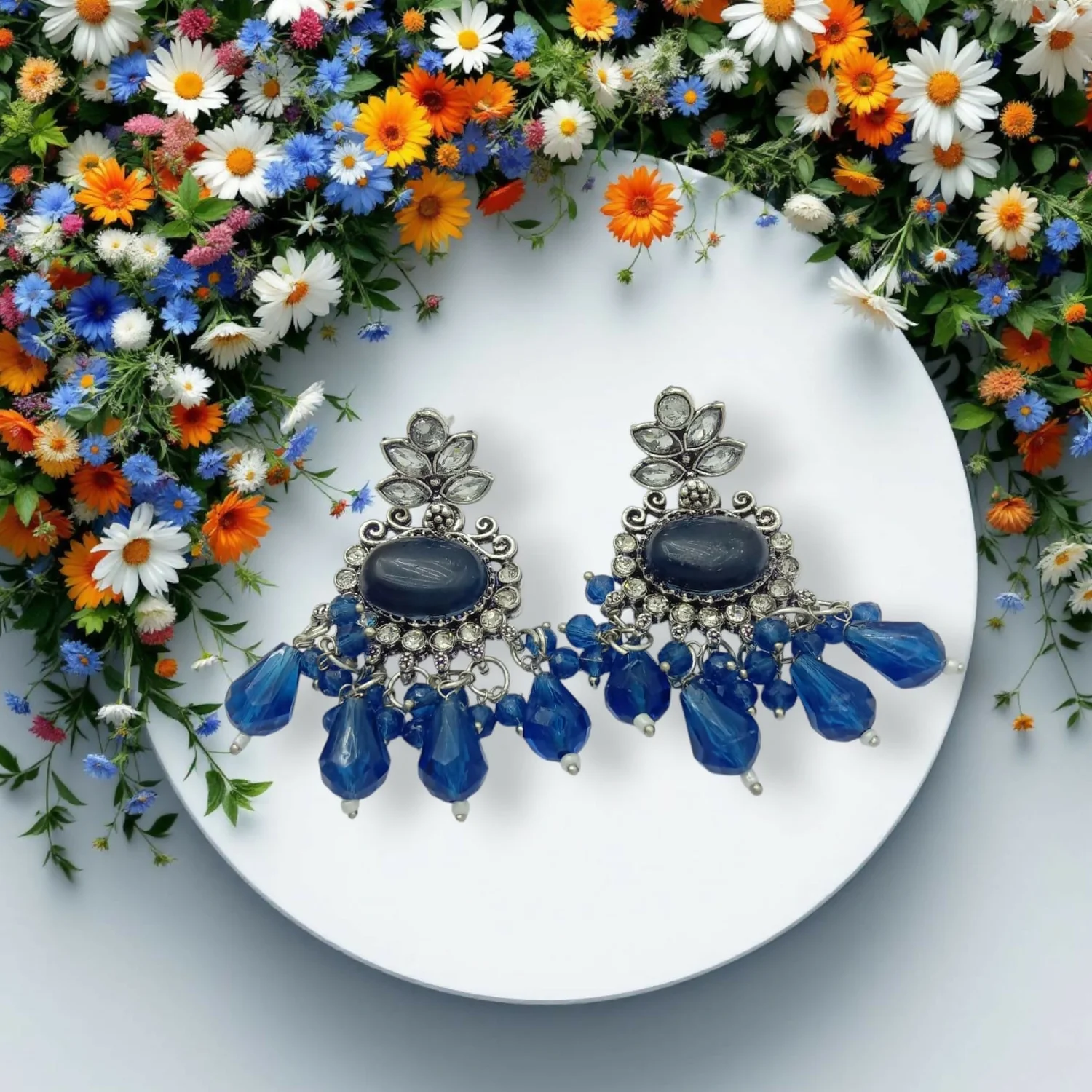 Be the first to review Vintage Tribal German Silver Earrings in Deep Navy Blue!