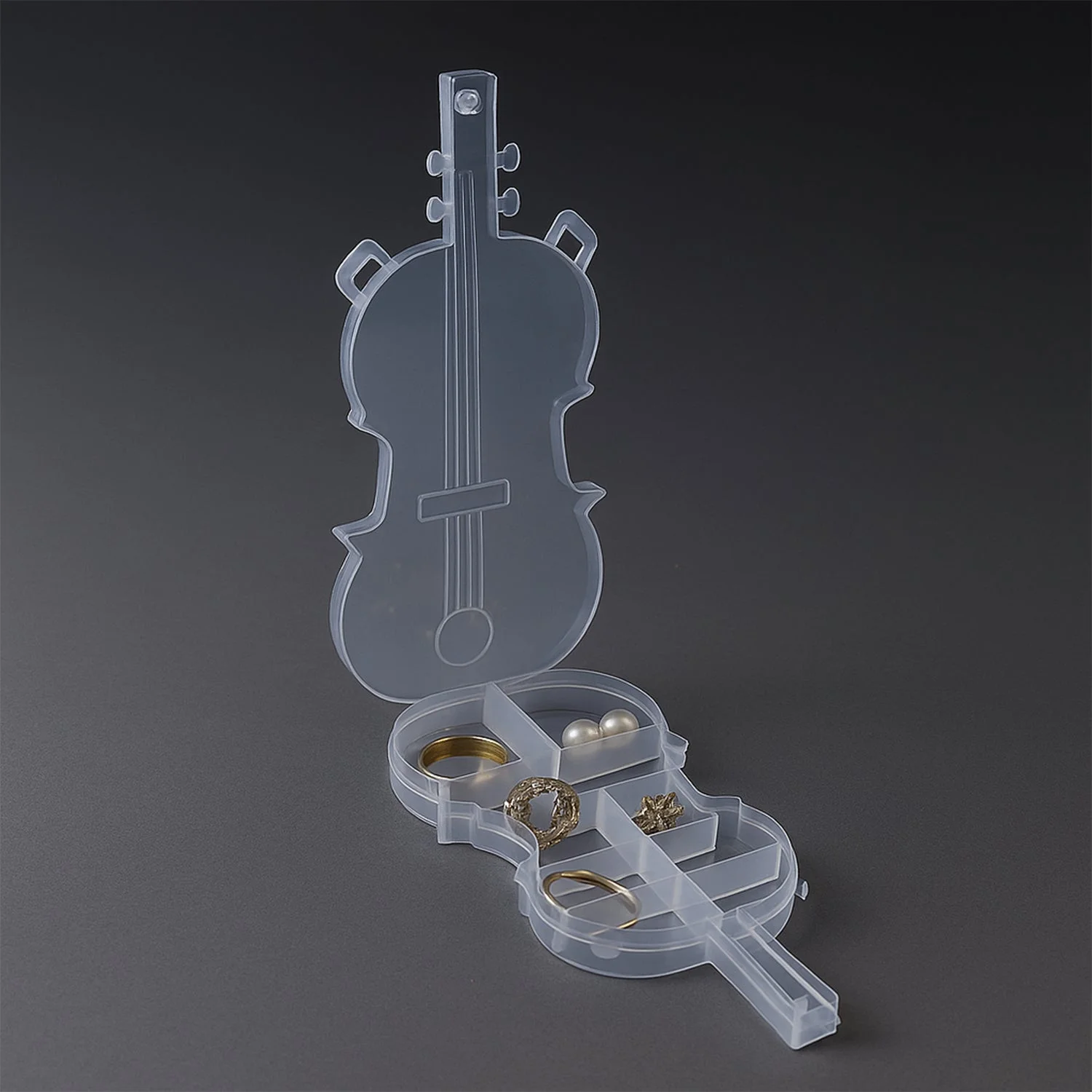 Crafted from durable BPA-free plastic, the body allows you to easily view contents without opening. The unique violin design makes it not only functional but also visually appealing — a perfect blend of art and organization for your desk, dresser, or DIY station.