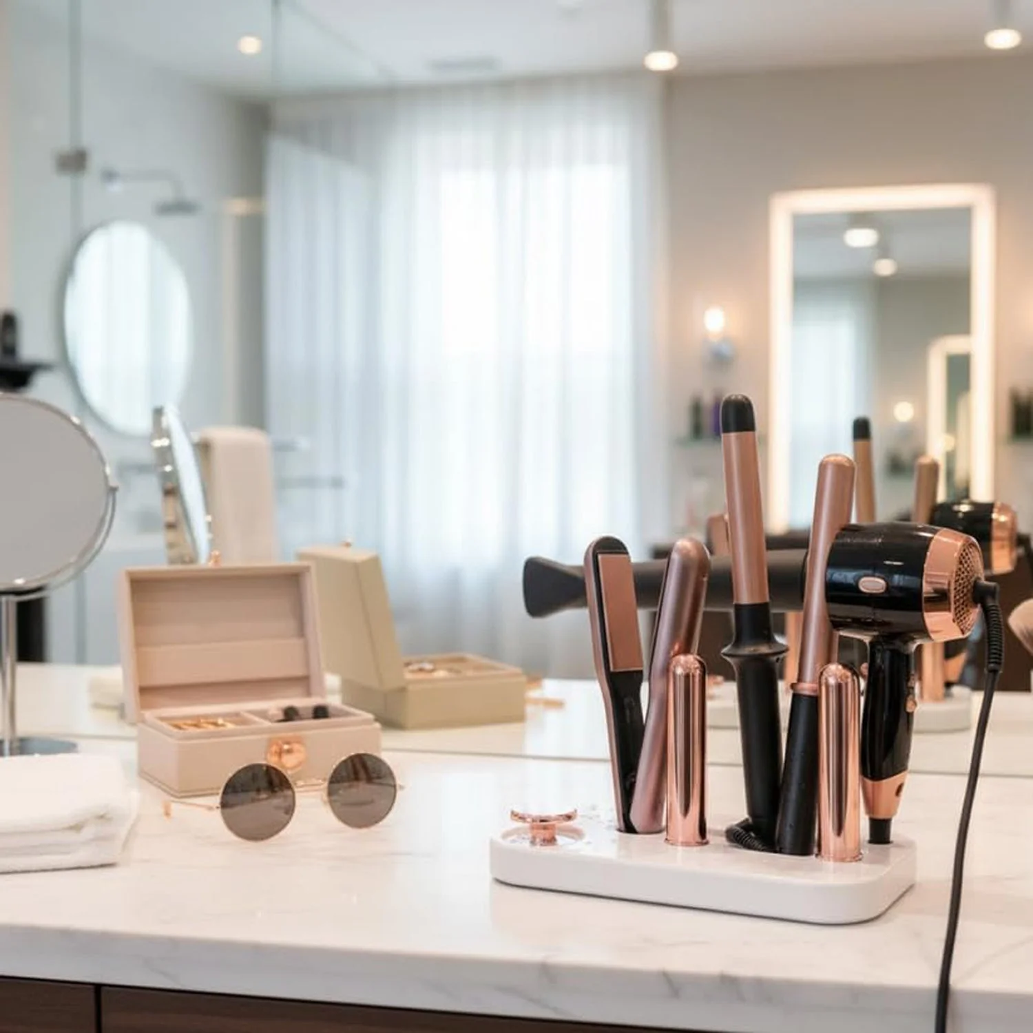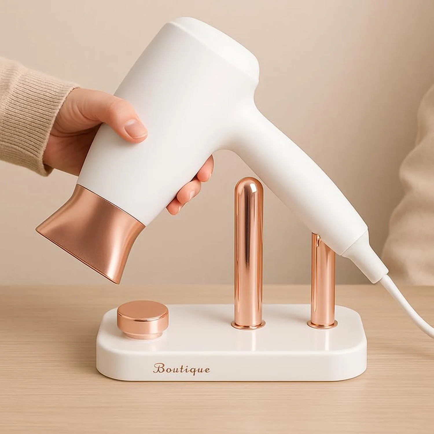 Keep your hair dryer neatly organized with this simple and efficient wall mount holder. Designed specifically to hold your hair dryer securely, it helps save space and keeps your bathroom or dressing area clutter-free. The wall-mounted design ensures easy access while freeing up countertop space. Its sturdy and heat-resistant construction makes it safe for daily use with styling tools. A perfect solution for maintaining a clean and organized grooming area.
