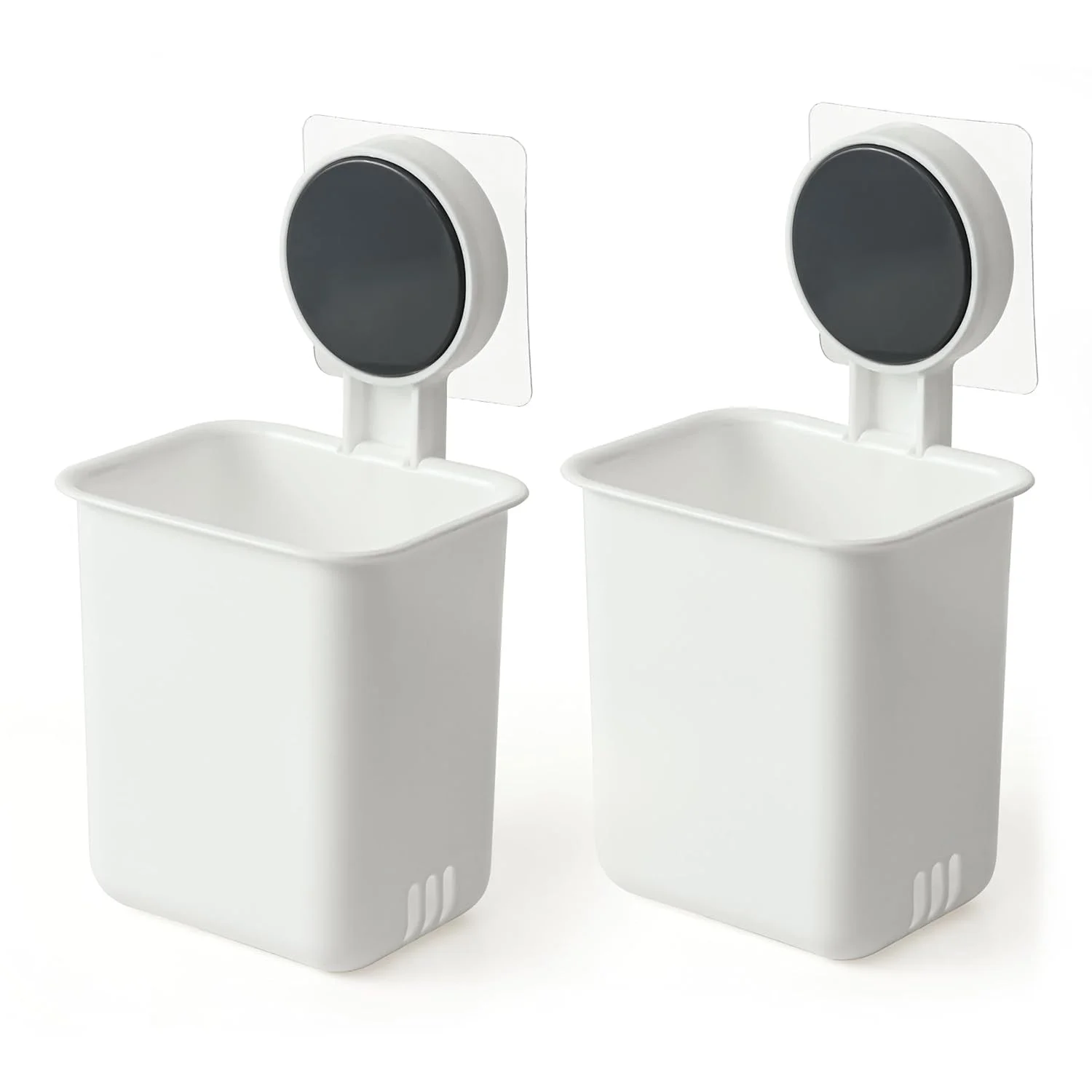 Wall Mounted Bathroom Storage Organizer Cup Set with Strong Adhesive Backing for Toothbrush, Toothpaste, Makeup Brushes & Toiletries – Space Saving Multipurpose Bathroom Holder (2 Piece Set)