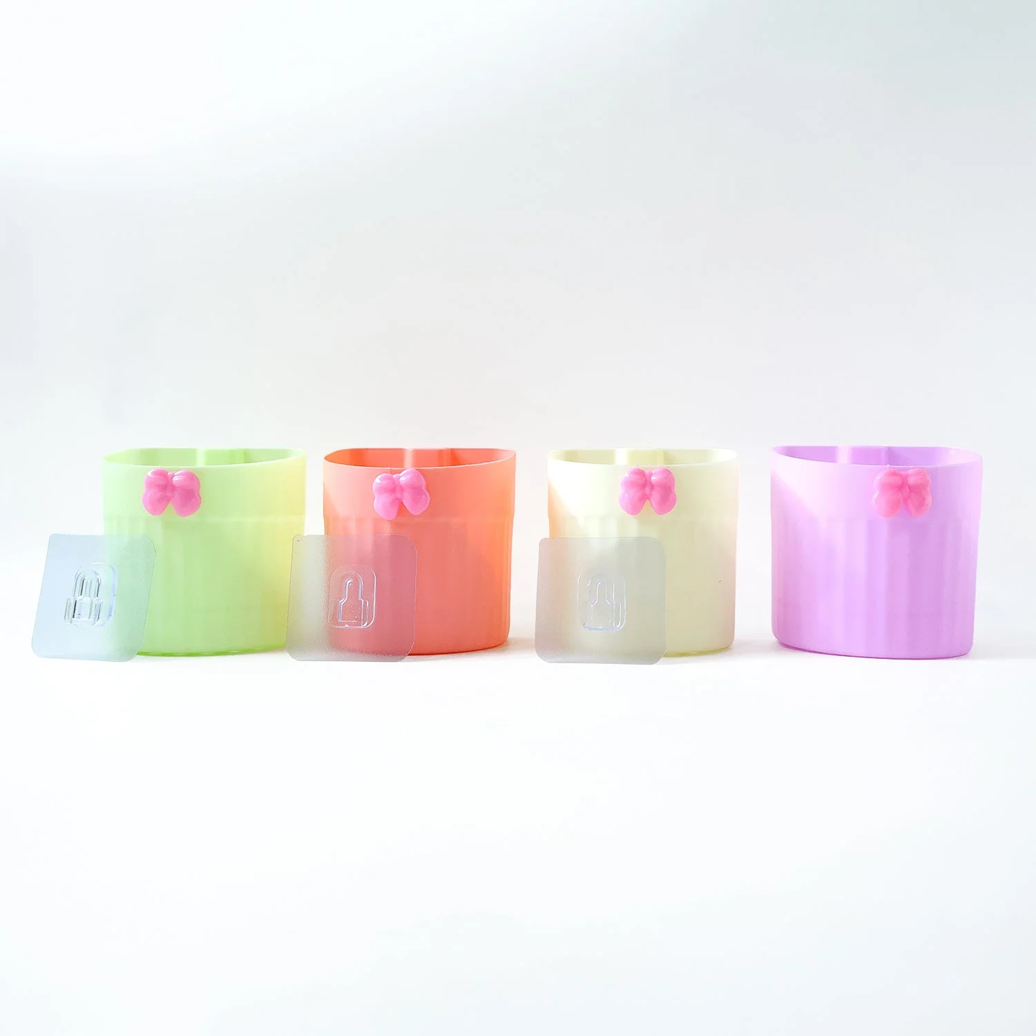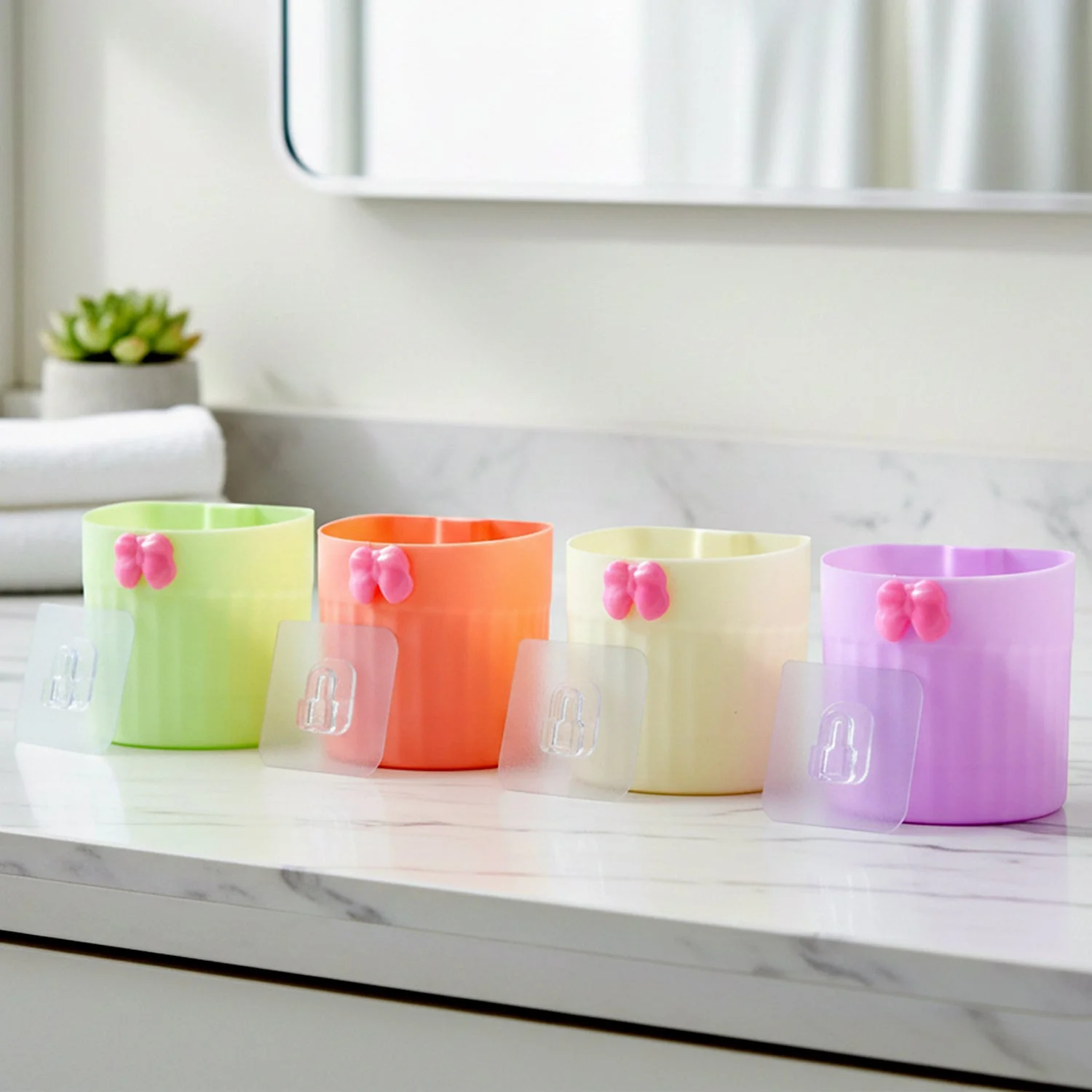 Wall Mounted Bathroom Toothbrush Holder Set with Self Adhesive Installation for Toothbrush, Toothpaste and Bathroom Accessories – Space Saving Bathroom Organizer Cups (4 Pc Set)