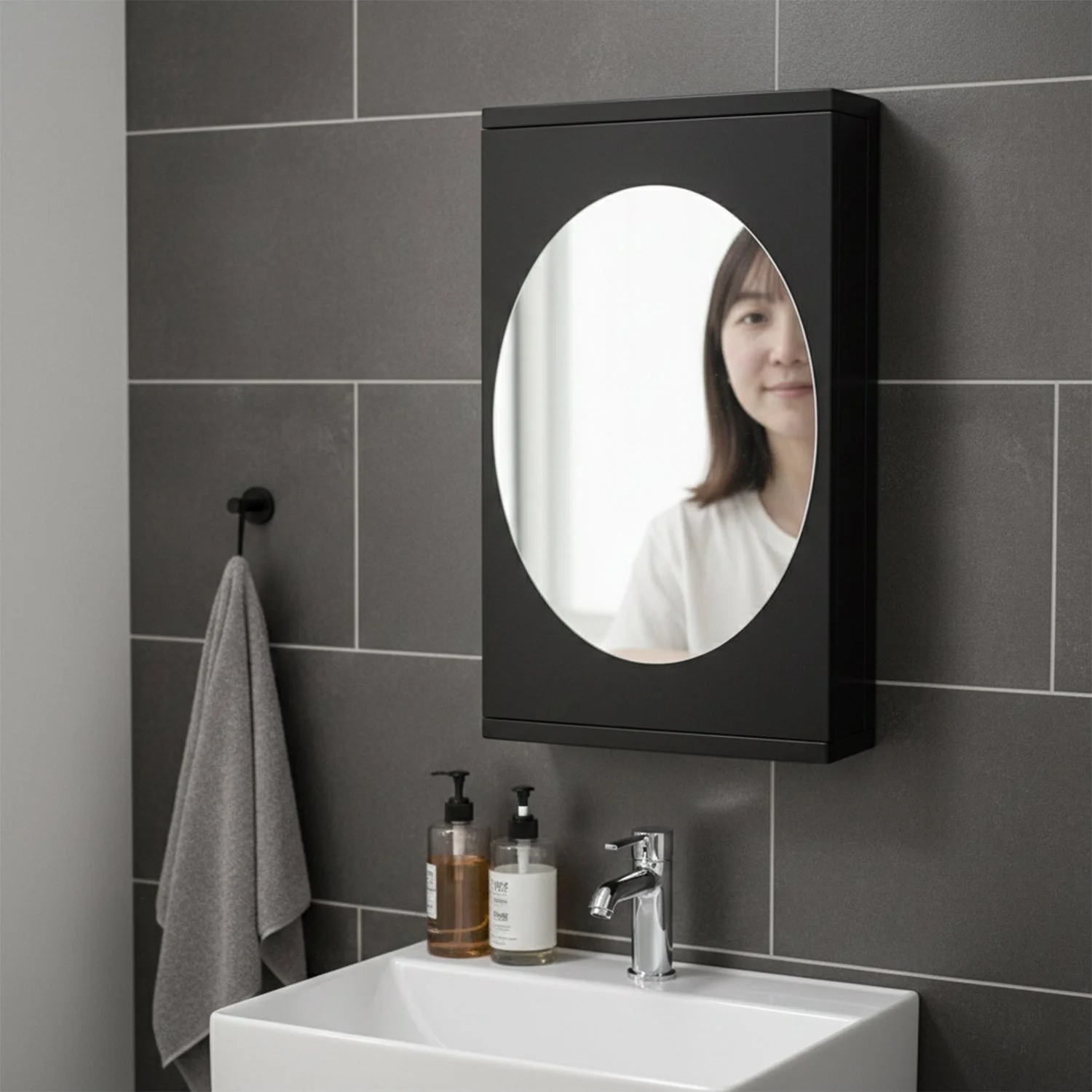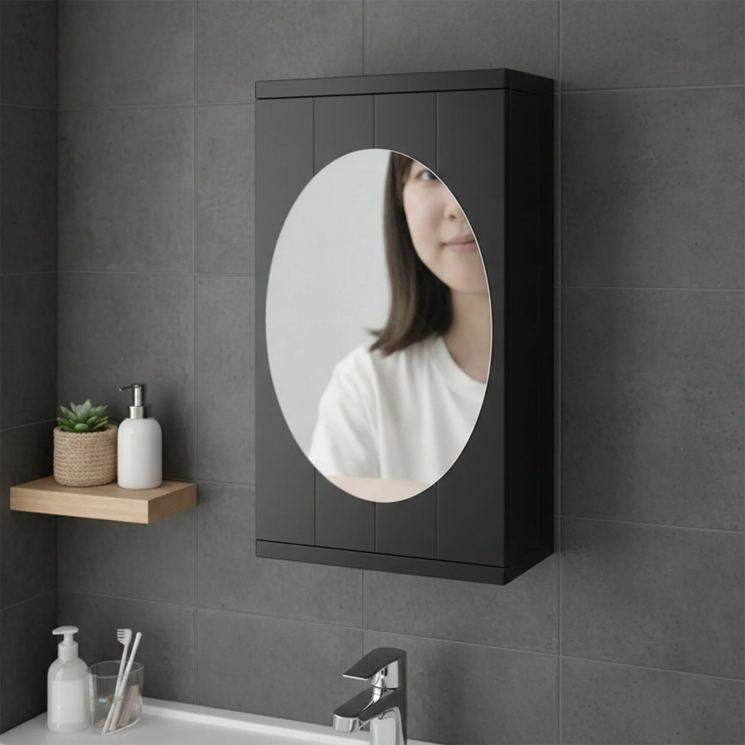 wall mounted rotating storage cabinet, black mirror cabinet organizer, wall mounted bathroom mirror cabinet, rotating storage cabinet with mirror, oval mirror wall cabinet, multi layer bathroom storage organizer, dressing room mirror cabinet, space saving wall mounted cabinet, bathroom wall storage with mirror, compact mirror storage cabinet 22 x 42 cm, modern black bathroom cabinet, front mirror storage organizer