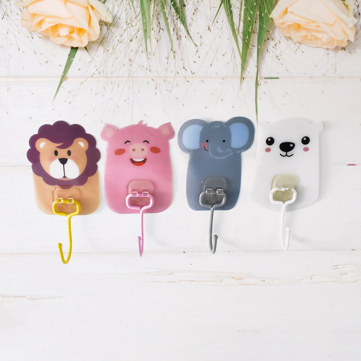 Wall Hooks Cartoon Self Adhesive Hooks Wall Mounted Coat Hooks for Kids Hanging Keys Towels Hats (10 Pcs Set)