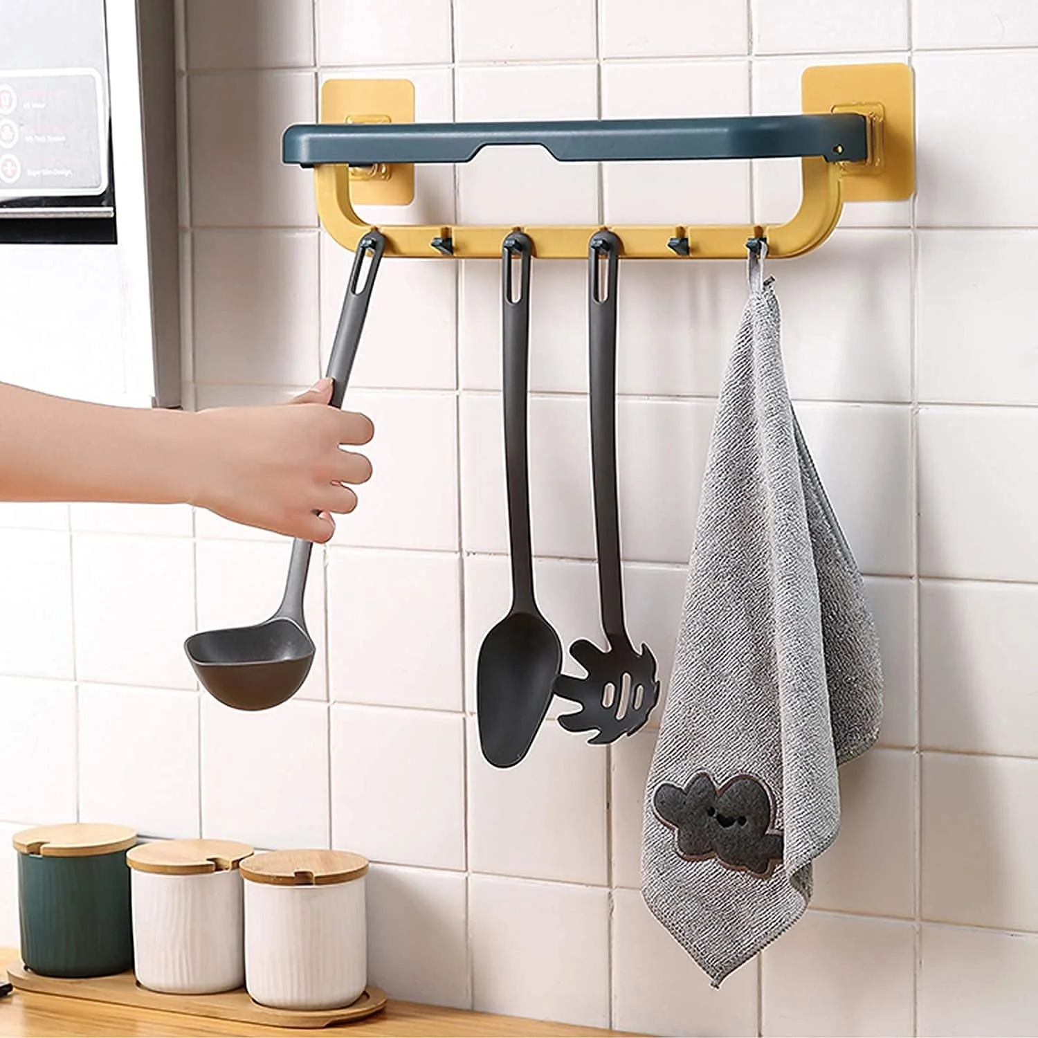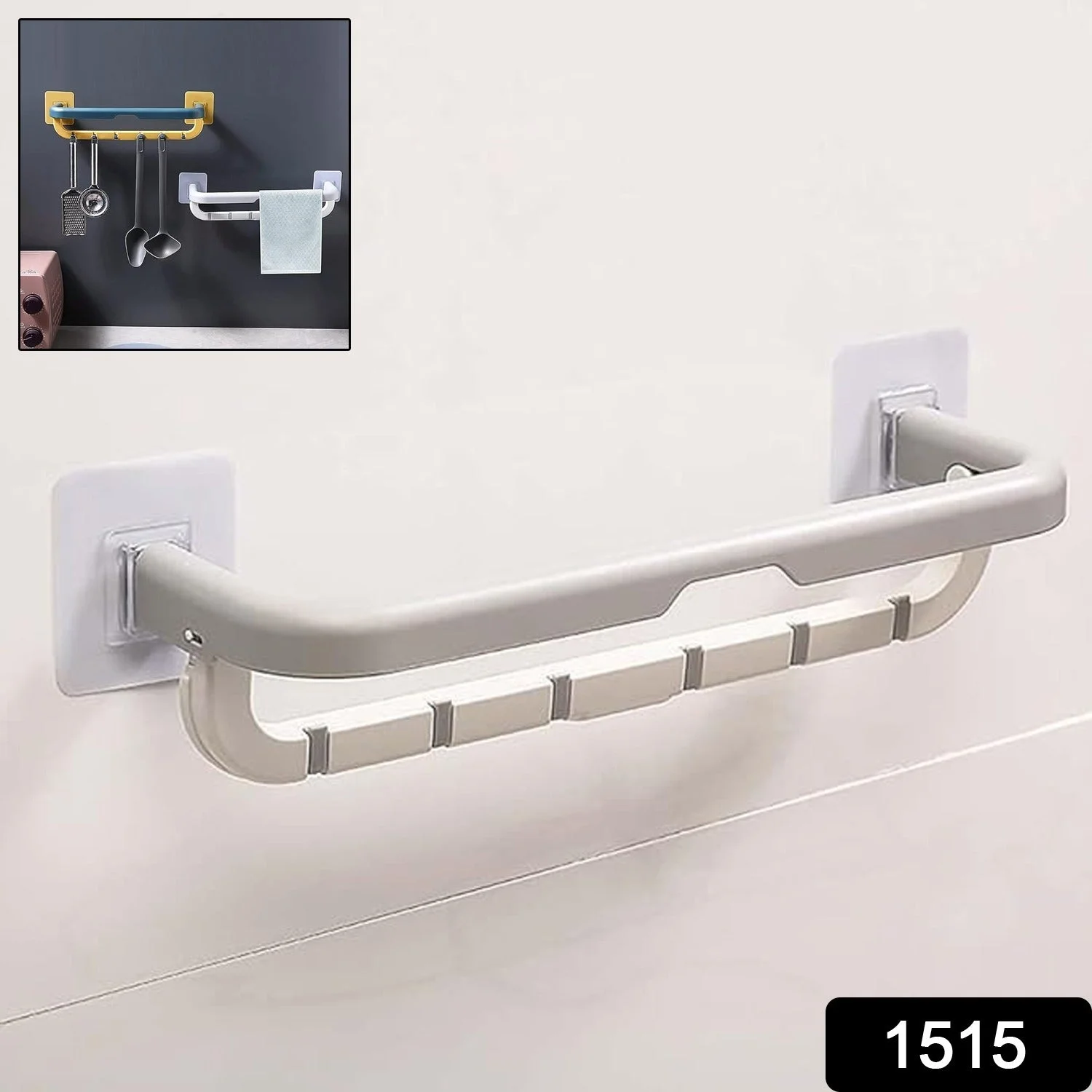 1515 Wall Mounted Double Bar Towel Holder with Hooks | Multifunctional Adjustable Towels Rack for Kitchen/Bathroom | Folding Towel Shelf