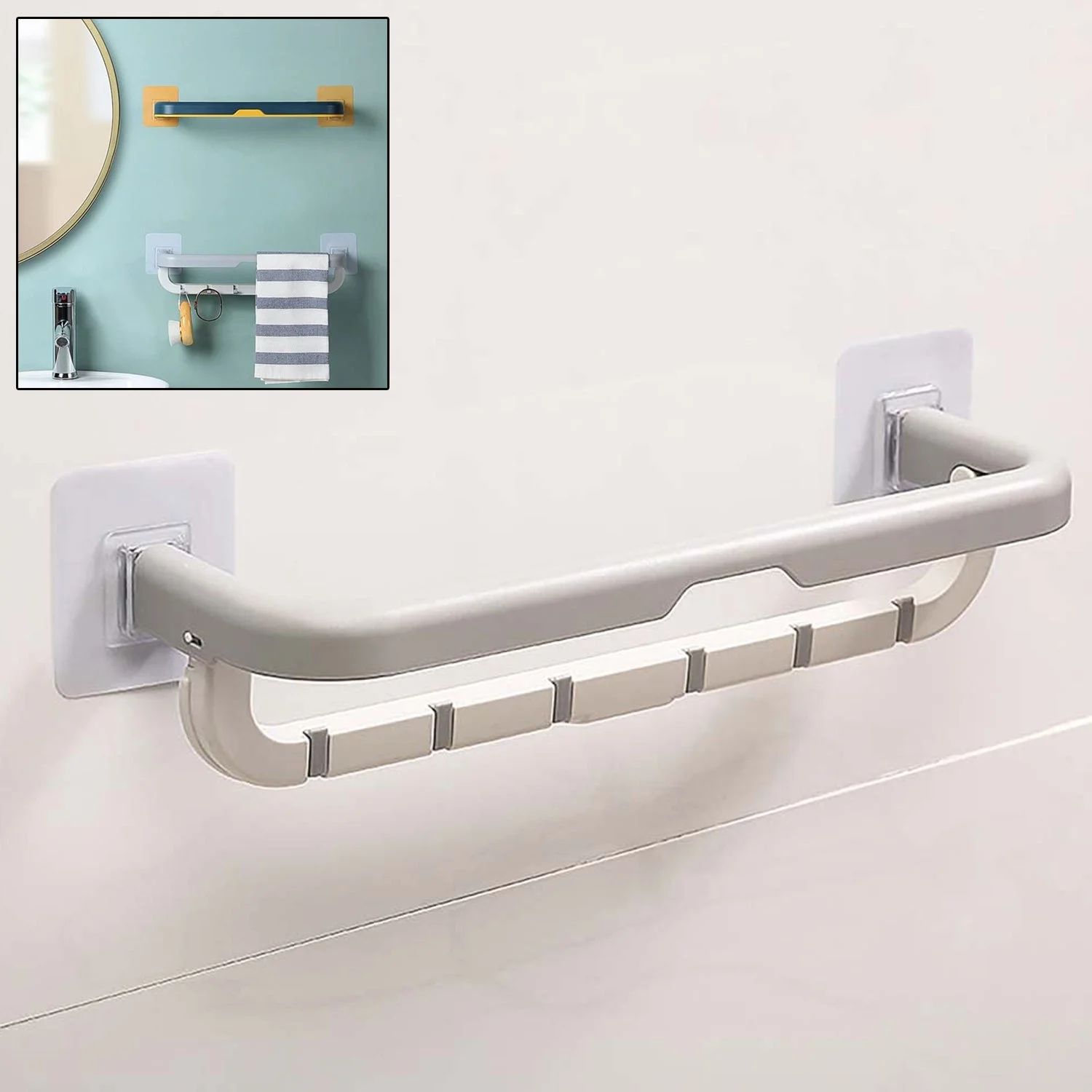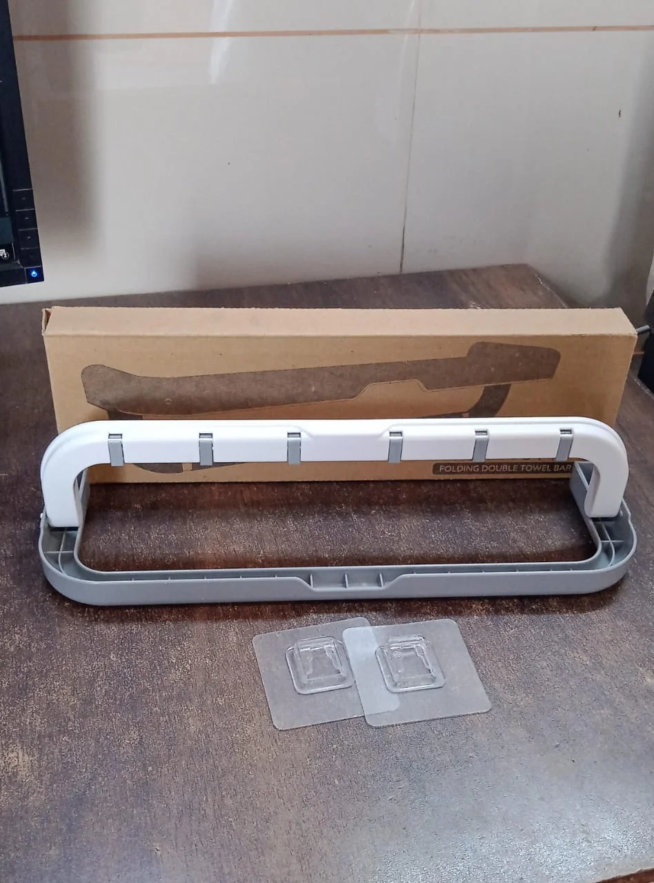 - Foldable bathroom towel rack, Double layer storage with towel hooks, ideal for use in bedrooms, bathrooms and closets. Keeping towels organized in an elegant and tidy way, this towel rod racks make you pleasant and improve, perfect to wall mount in bathroom and kitchen.