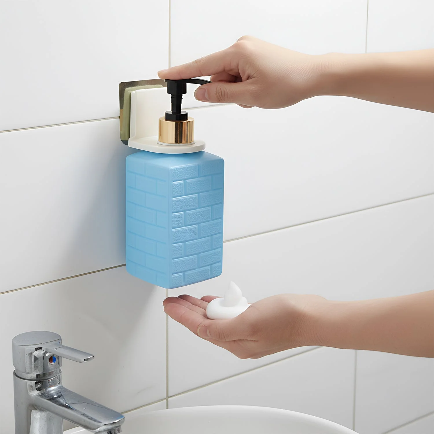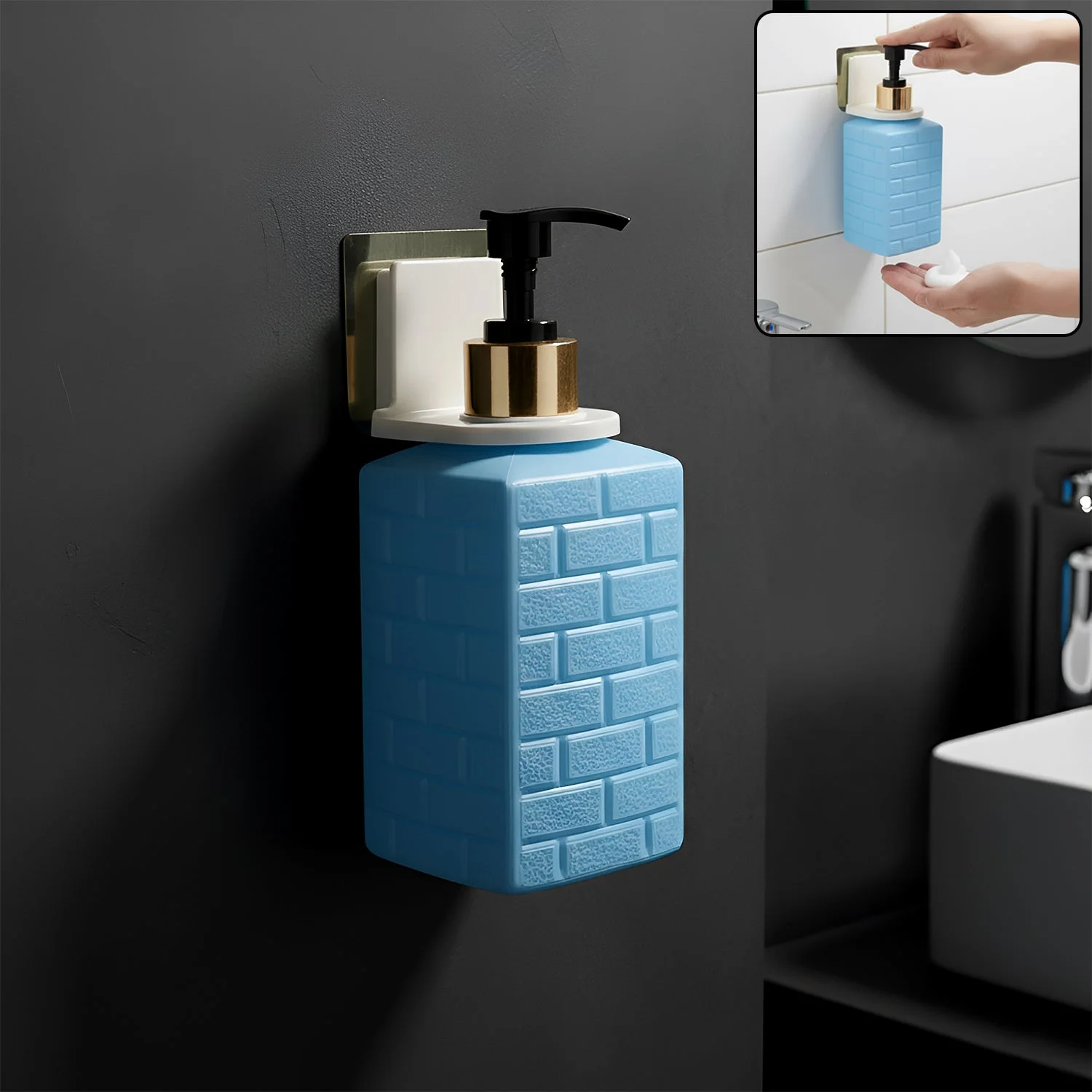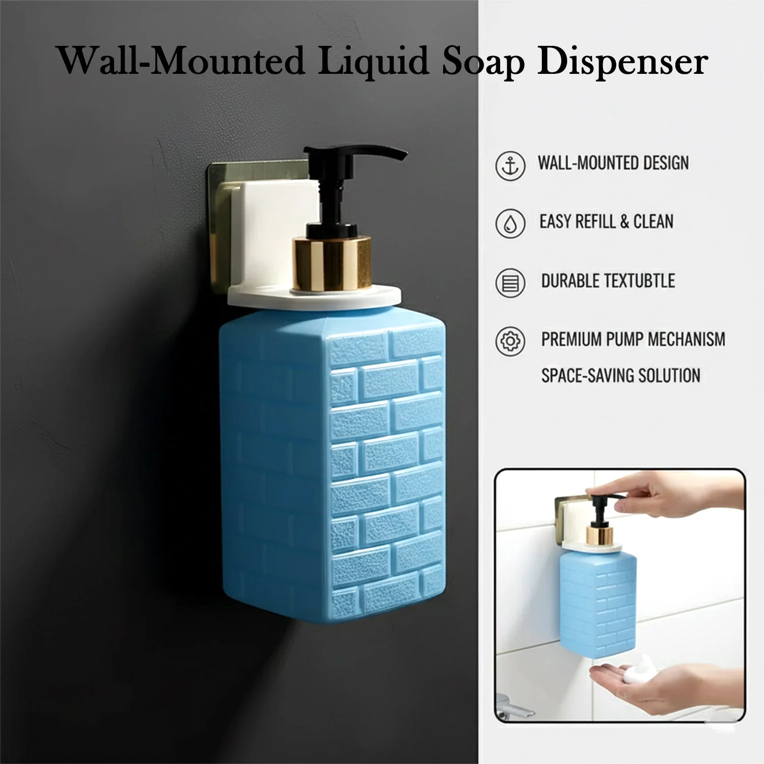 wall-mounted soap dispenser, liquid soap dispenser, push pump dispenser, self-adhesive soap holder, bathroom soap dispenser, wash basin dispenser, kitchen soap dispenser, space-saving soap dispenser, handwash dispenser, sanitizer dispenser, wall mount soap dispenser