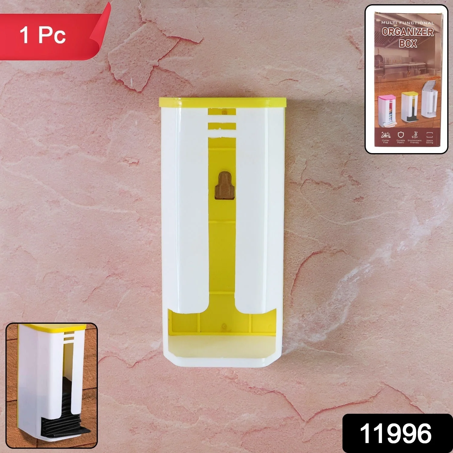 wall-mounted organizer box , front slot organizer , drill-free wall mount , multifunction storage container , bag refill organizer , wall mountable bag box , plastic bag organizer, kitchen cloth holder , refill pack dispenser , home storage solution