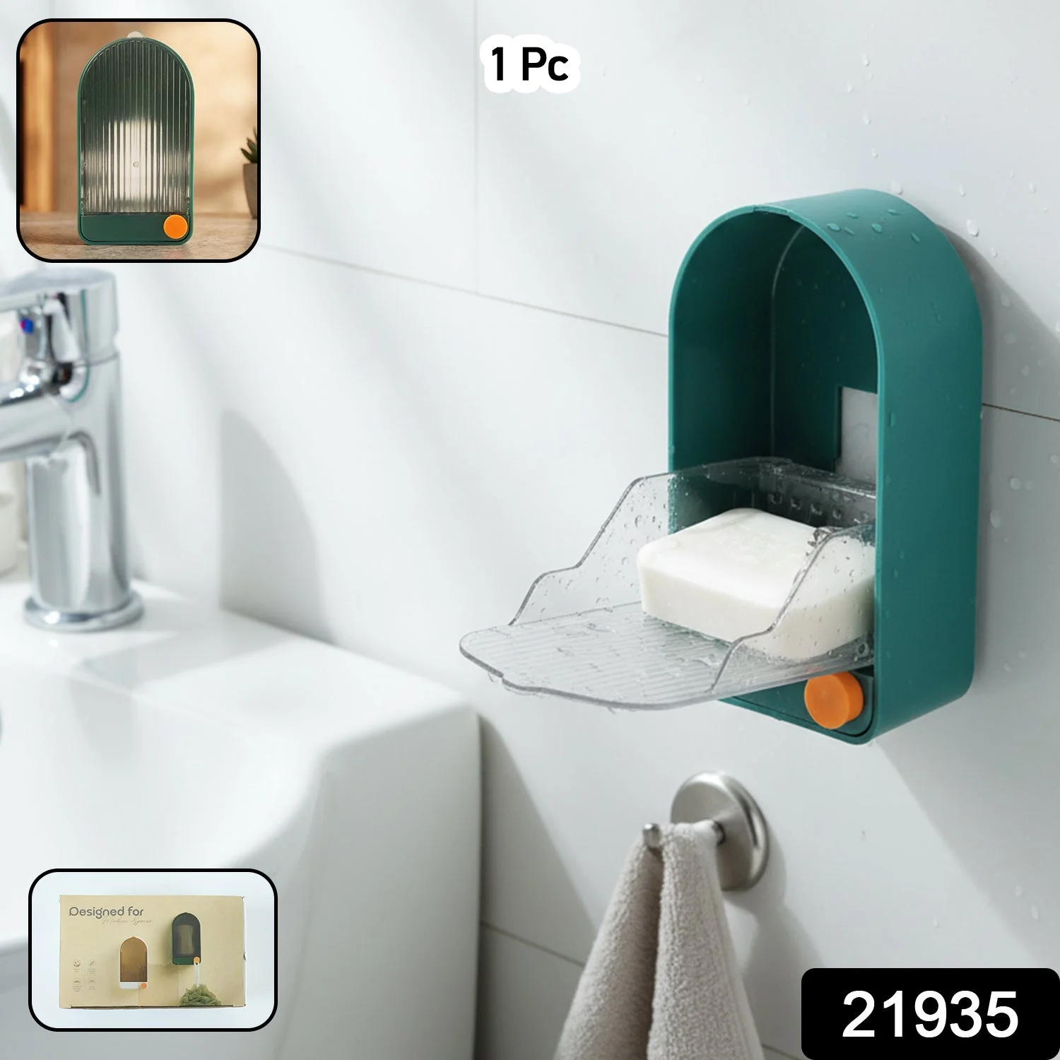 This wall mounted soap holder is designed to keep your soap clean, dry, and easily accessible while maintaining a tidy bathroom or kitchen space. The smart design includes a self-draining tray that allows excess water to flow away, preventing soap from becoming soft or messy. The raised protective cover helps keep the soap protected while allowing air circulation for quick drying. Its wall mounted design helps save countertop space and keeps the wash area organized. The holder is easy to install and convenient to use near sinks, wash basins, or kitchen areas. With its practical and hygienic design, it helps maintain cleanliness and prolongs the life of your soap.