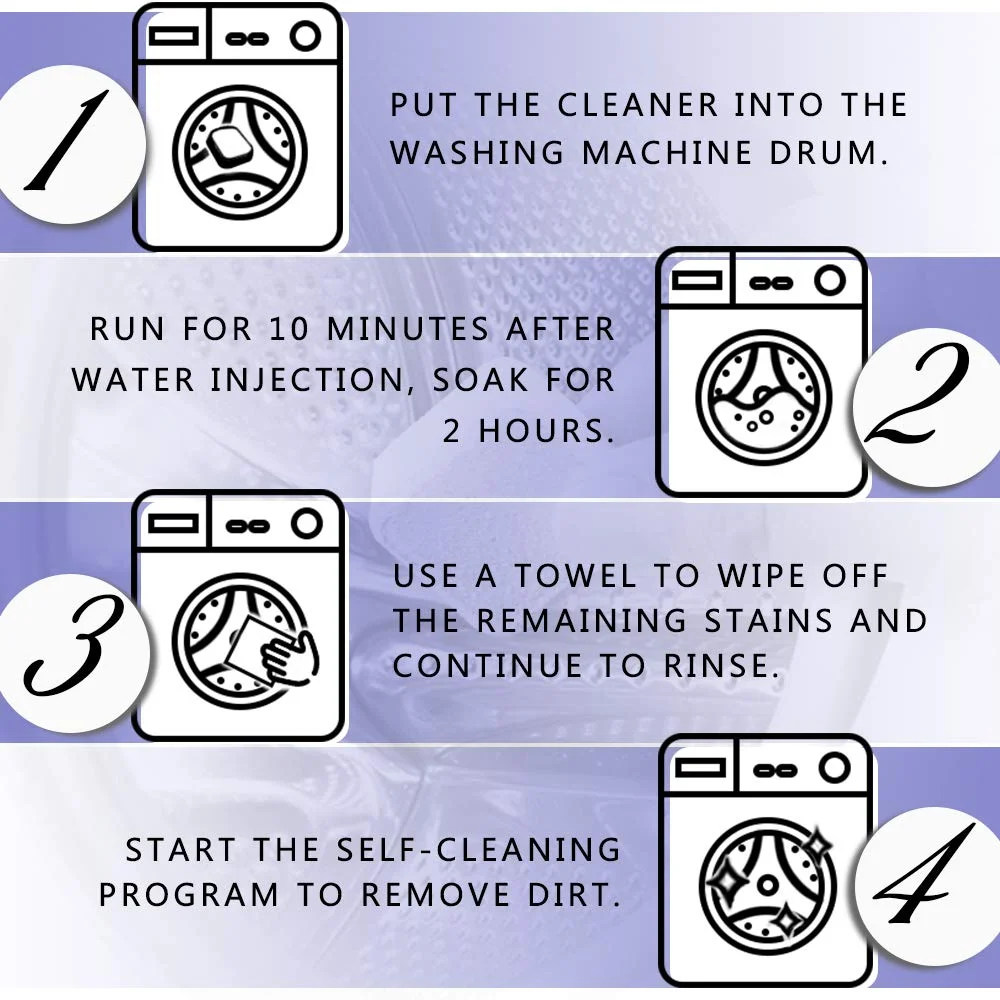 This Lavender fragrance effervescent tablet is suitable for cleaning septic tanks, front load washing machine, top load washing machine and conventional washers, keep your machine in a safe, neat and organized working environment.