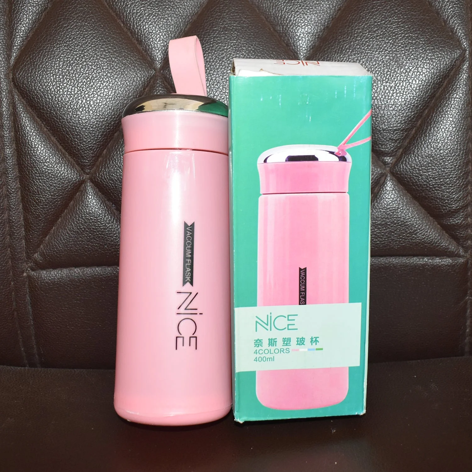 outdoor sport water bottle 400ml leak proof BPA-free for travel cold and hot water glass water bottle with daily water intake for gym and children, Nice Bottle (1 pc / Pink Color)