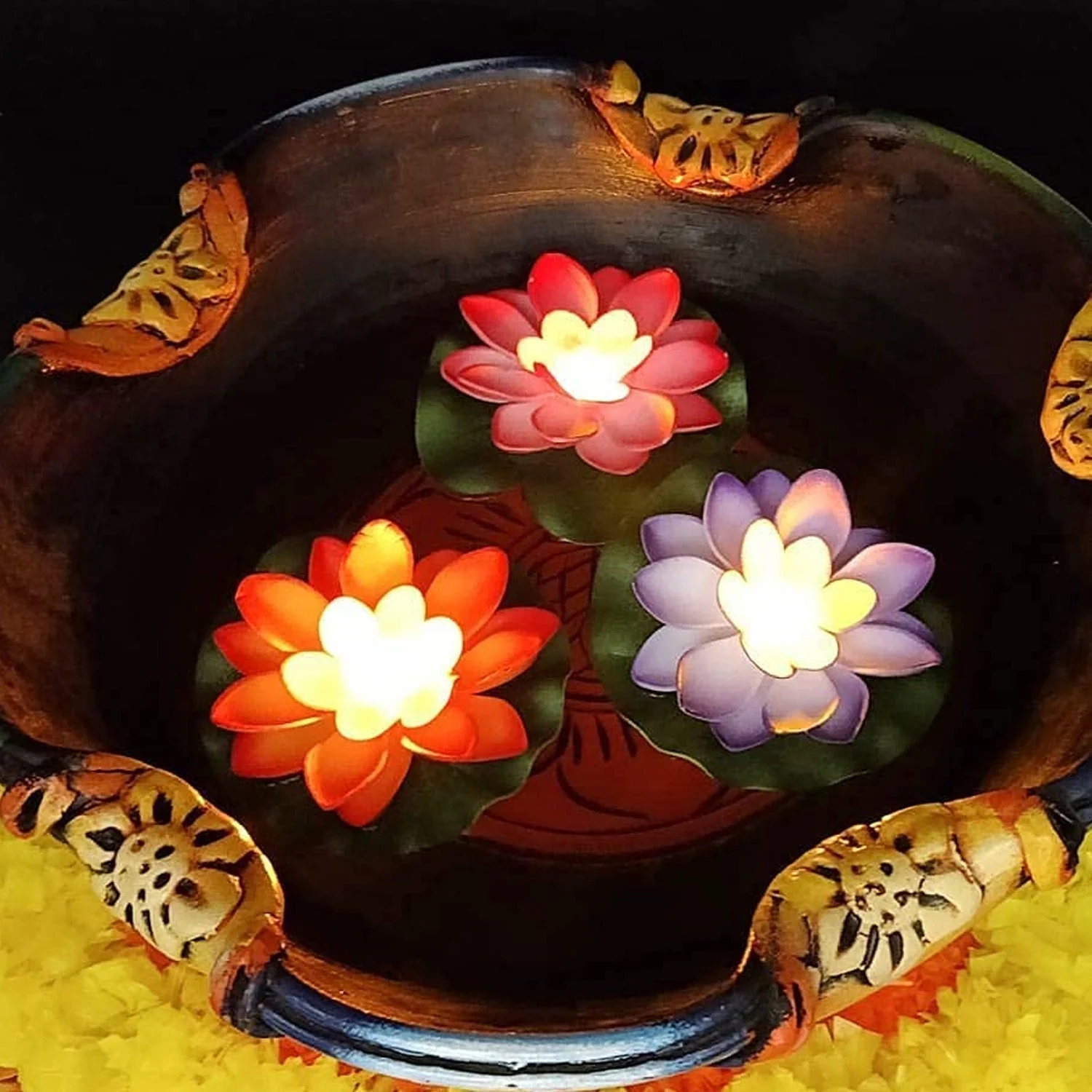 6556 Water Floating Smokeless Candles & Lotus Flowers Sensor Led Tealight for Outdoor and Indoor Decoration - Pack of 6 Candle Lotus diya (Pack of 6) (Diya, Divo, Diva, Deepak, Jyoti)