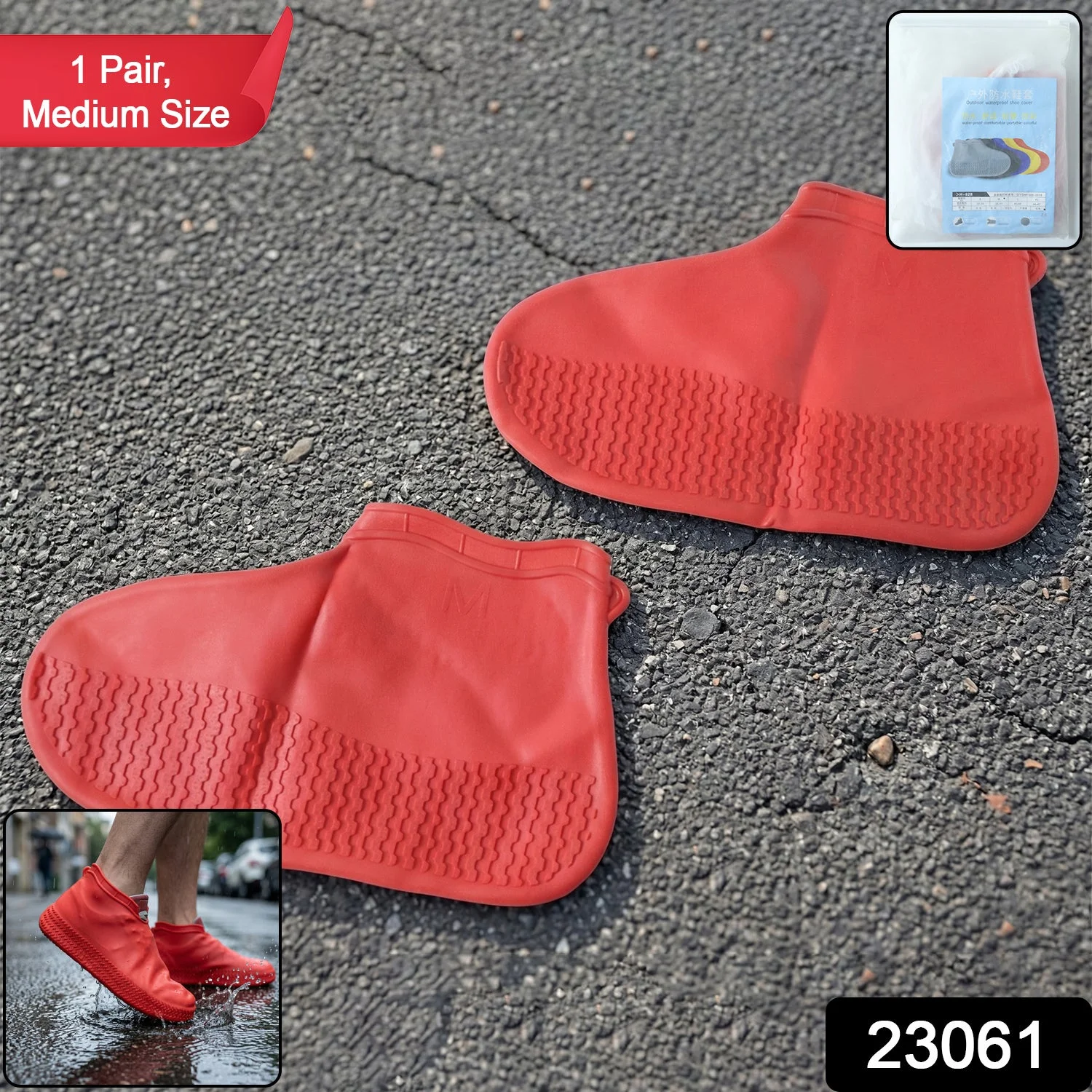 waterproof silicone shoe cover, rain shoe protector red, outdoor shoe cover red, medium size silicone shoe cover, anti-slip shoe cover, reusable shoe protector, travel shoe cover, bike riding shoe cover, daily use shoe protector, red silicone shoe cover, non-slip rain shoe cover, waterproof shoe sleeve, protective shoe cover for outdoors, silicone overshoe medium, all weather shoe cover, shoe cover for wet conditions, lightweight reusable shoe protector, anti skid shoe cover, rain gear shoe accessory