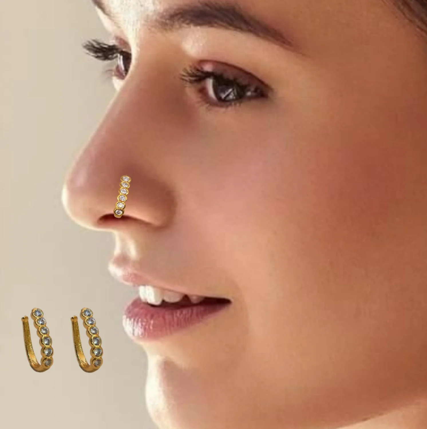 Be the first to review Wavy Diamond Clip-On Nose Ring | Gold Plated AD Non-Pierced!