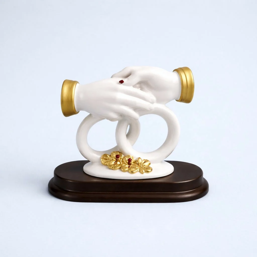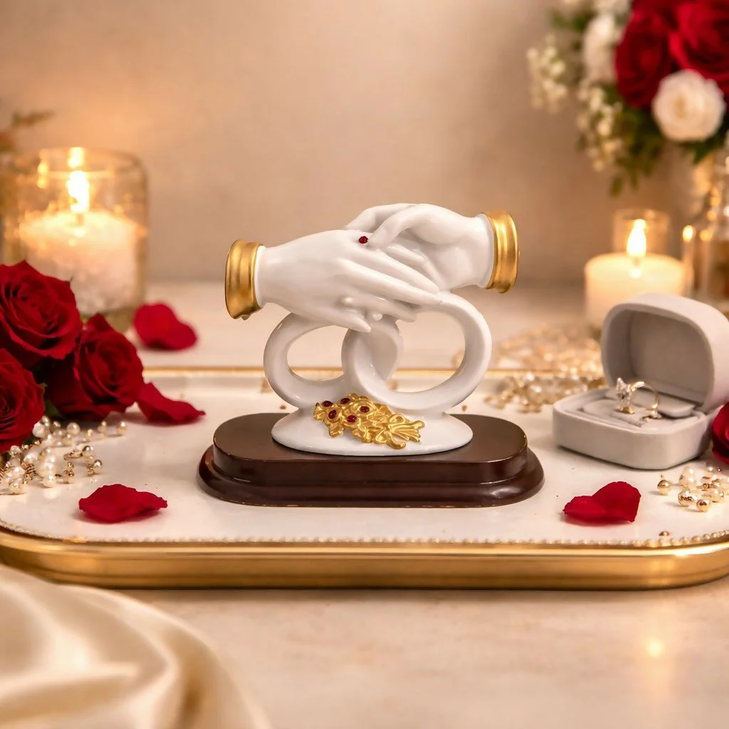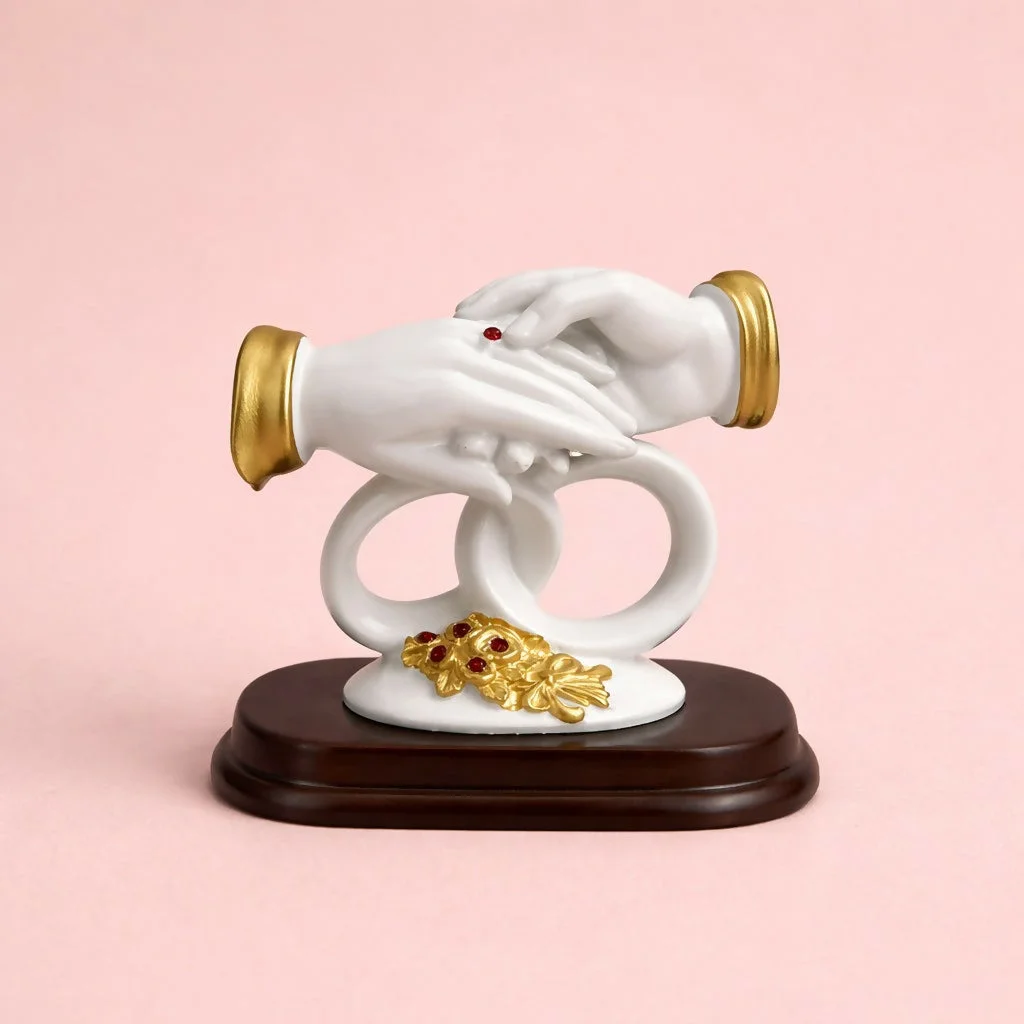 Celebrate love and togetherness with this beautifully crafted couple hand sculpture featuring an elegant ring design and floral accents. Symbolizing unity, bonding, and commitment, this decorative piece adds a meaningful and artistic touch to your home or office décor. Designed with a smooth finish and premium detailing, it is perfect for display on tables, shelves, or desks. An ideal gift for weddings, anniversaries, engagements, and special occasions.