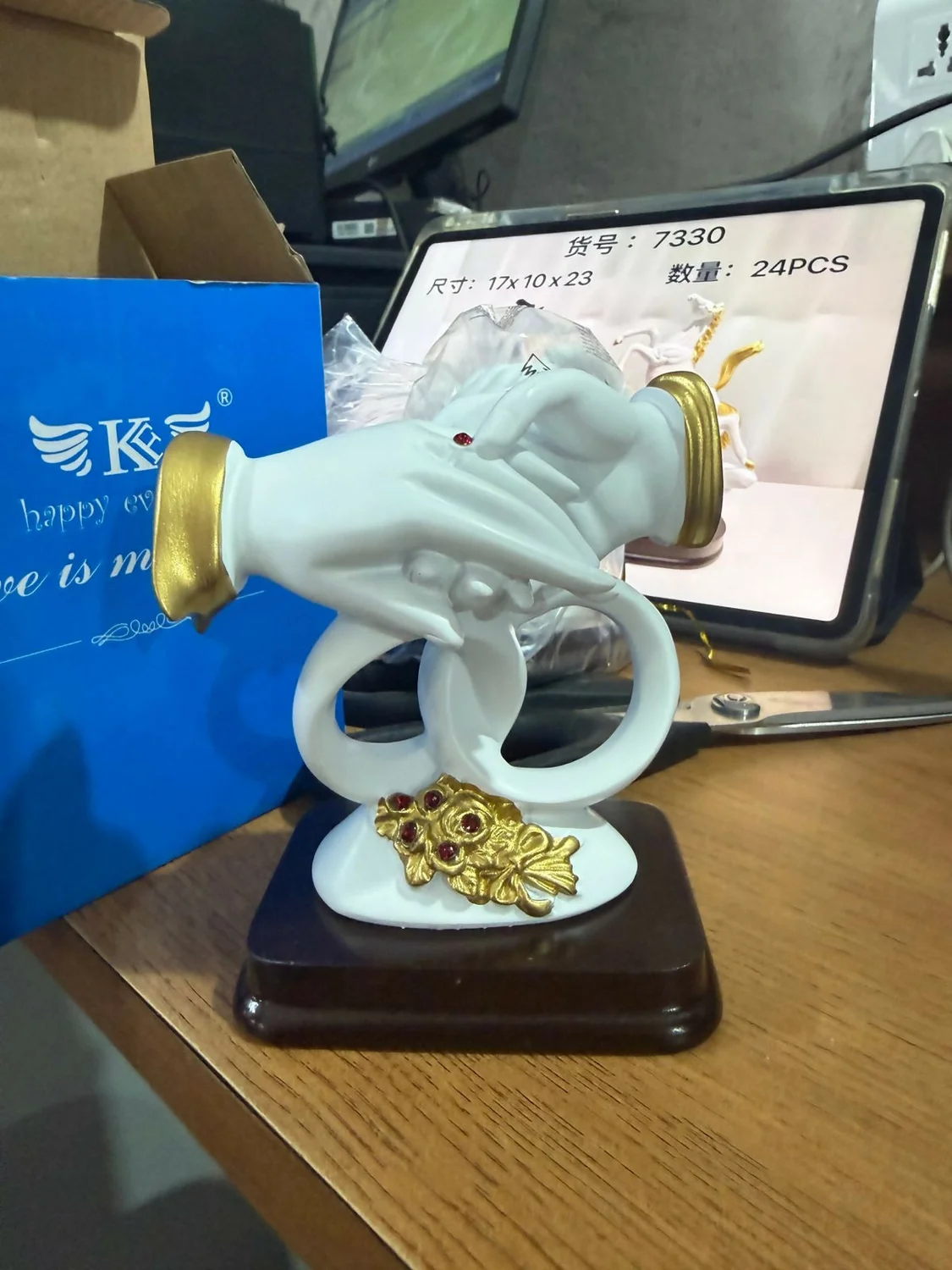 Be the first to review White and Gold Couple Hand Sculpture Showpiece with Ring Design Home Decor!