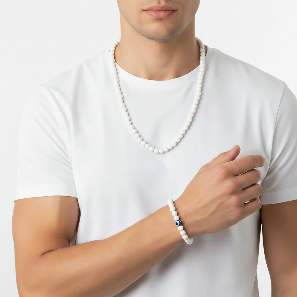 Be the first to review White Beads Necklace & Evil Eye Bracelet Combo!